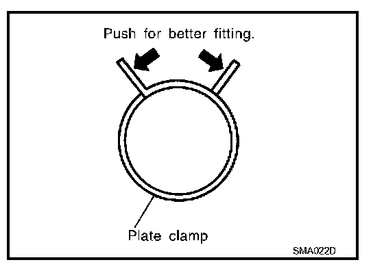 - After installing plate clamps, apply force to them in the direction of the arrow, tightening rubber hose equally all around.