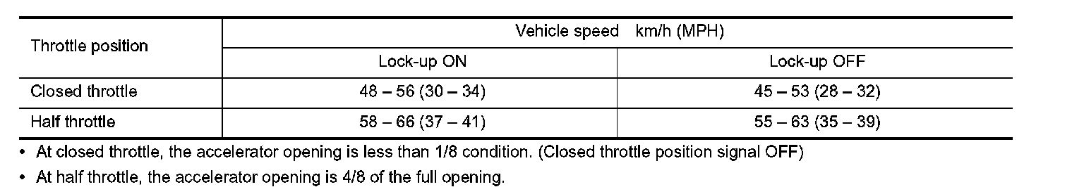 Vehicle Speed at Which Lock-up Occurs/Releases