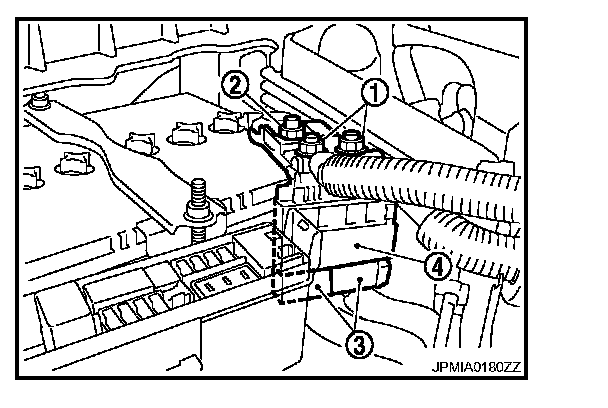 5. Remove fusible link holder mounting nut (2) to remove battery terminal with fusible link (4).