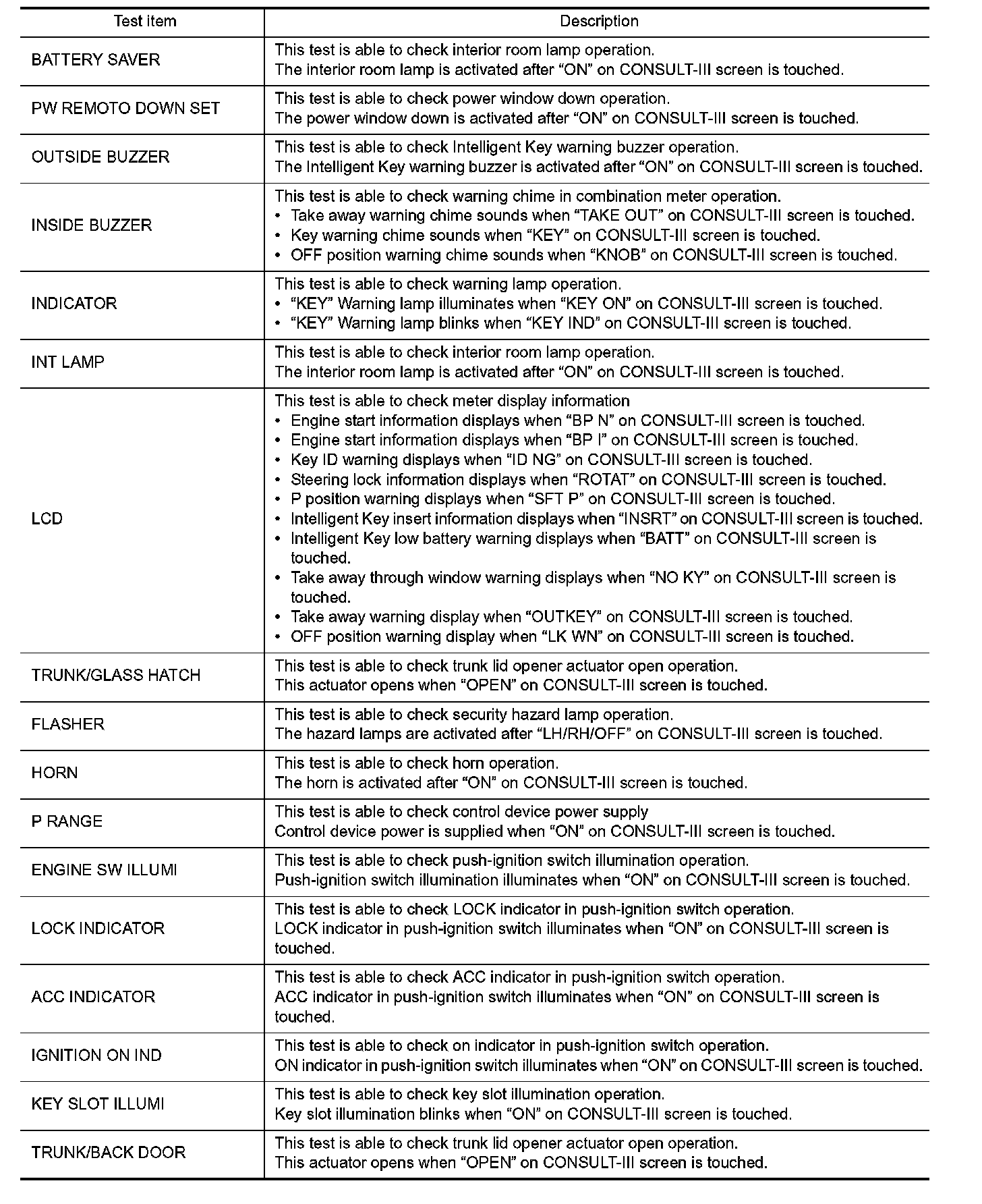 INTELLIGENT KEY : CONSULT-III Function (