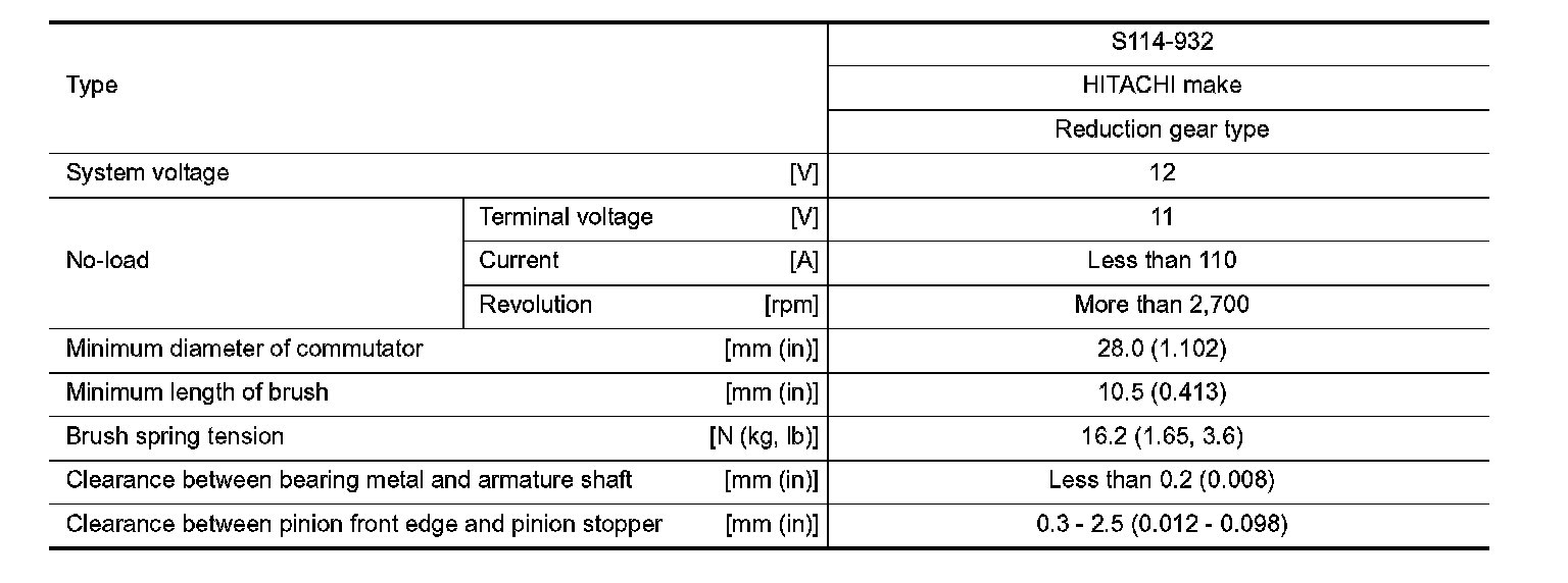 Starter Motor: Specifications
