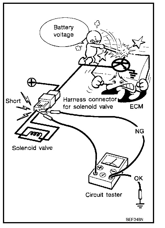 - When using a DMM, be careful not to let test probes get close to each other to prevent the power transistor in the control unit from damaging battery voltage because of short circuiting.
