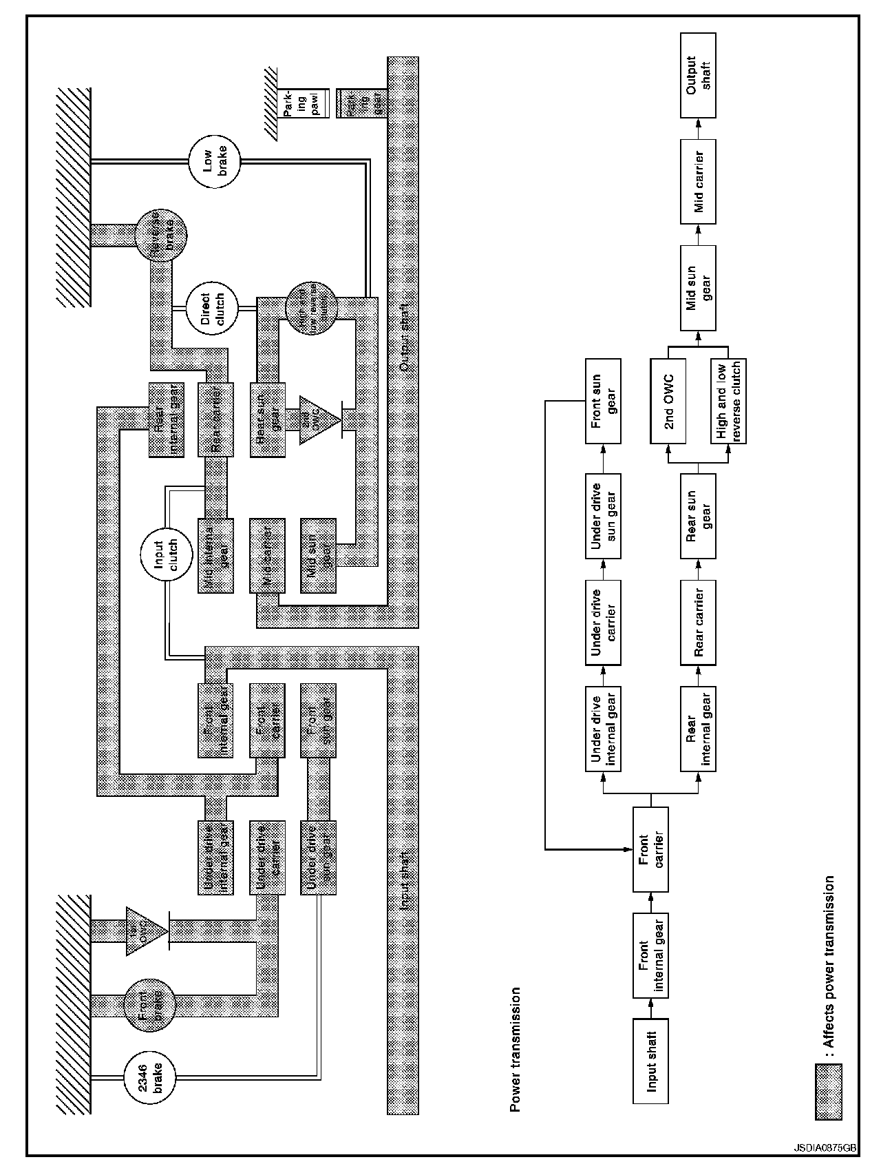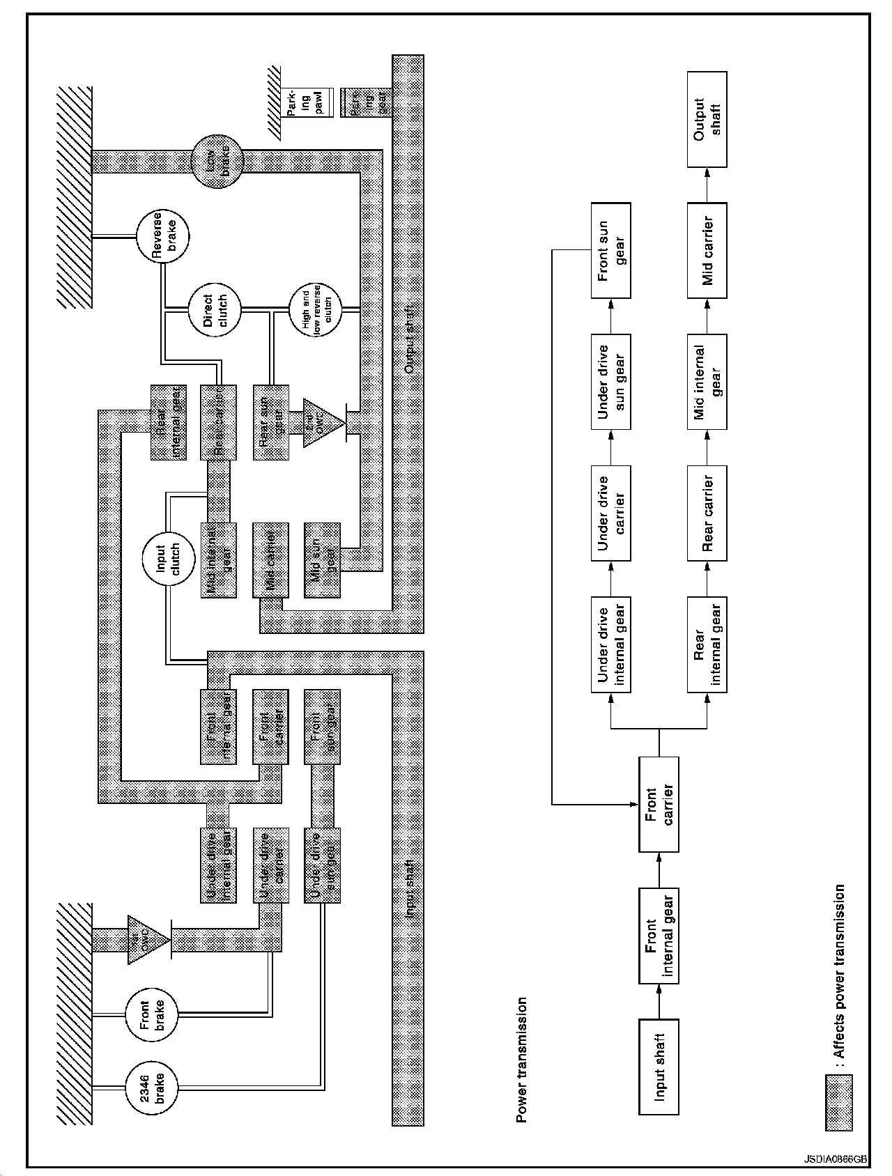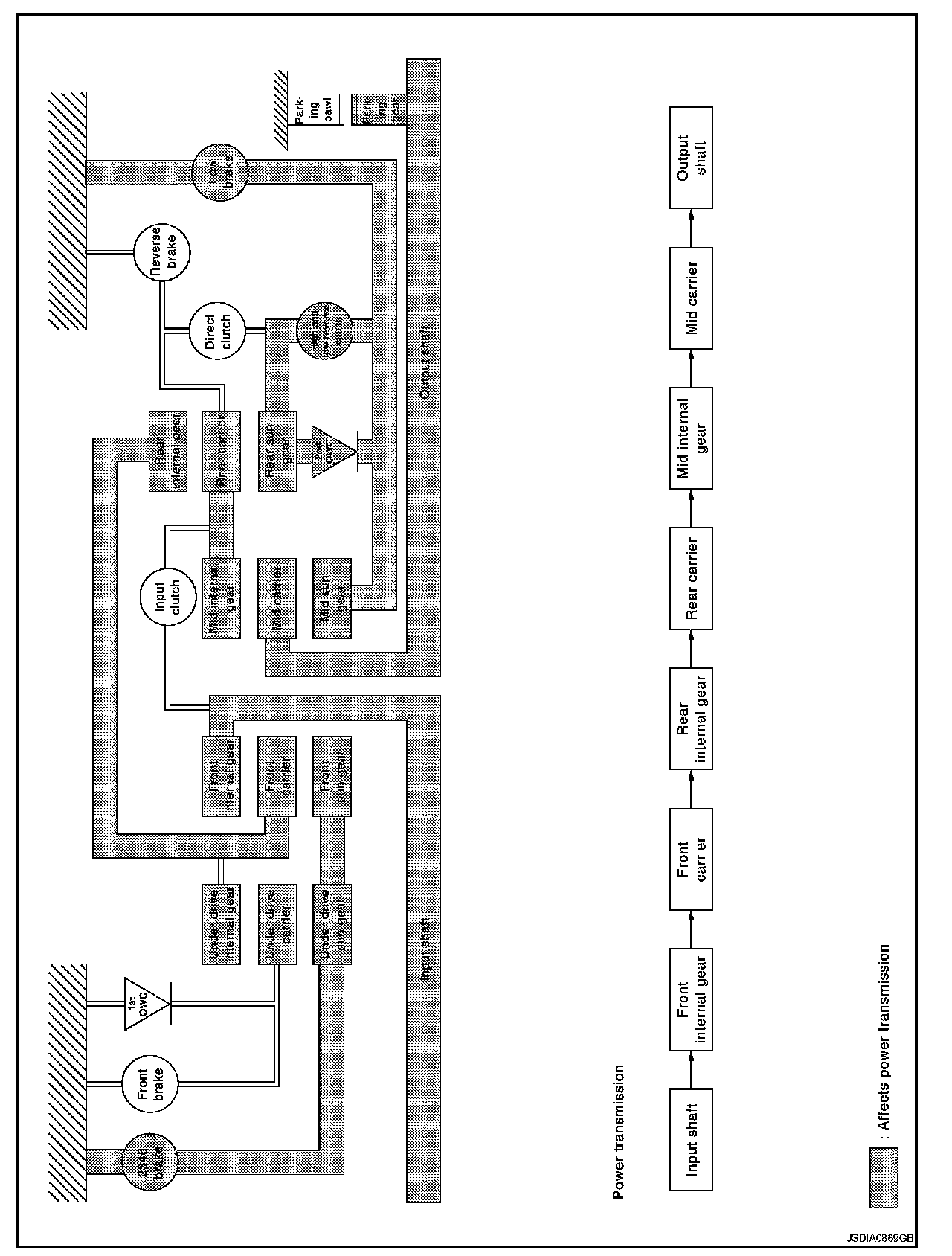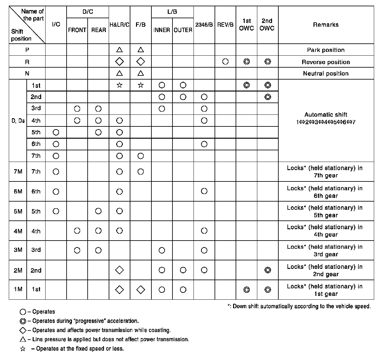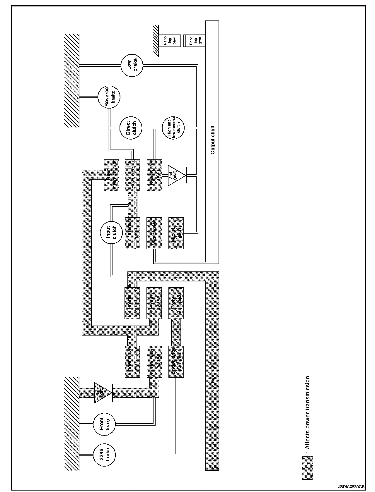 - The same as for the "N" position, since the low brake is released, so torque from the input shaft drive is not transmitted to the output shaft.