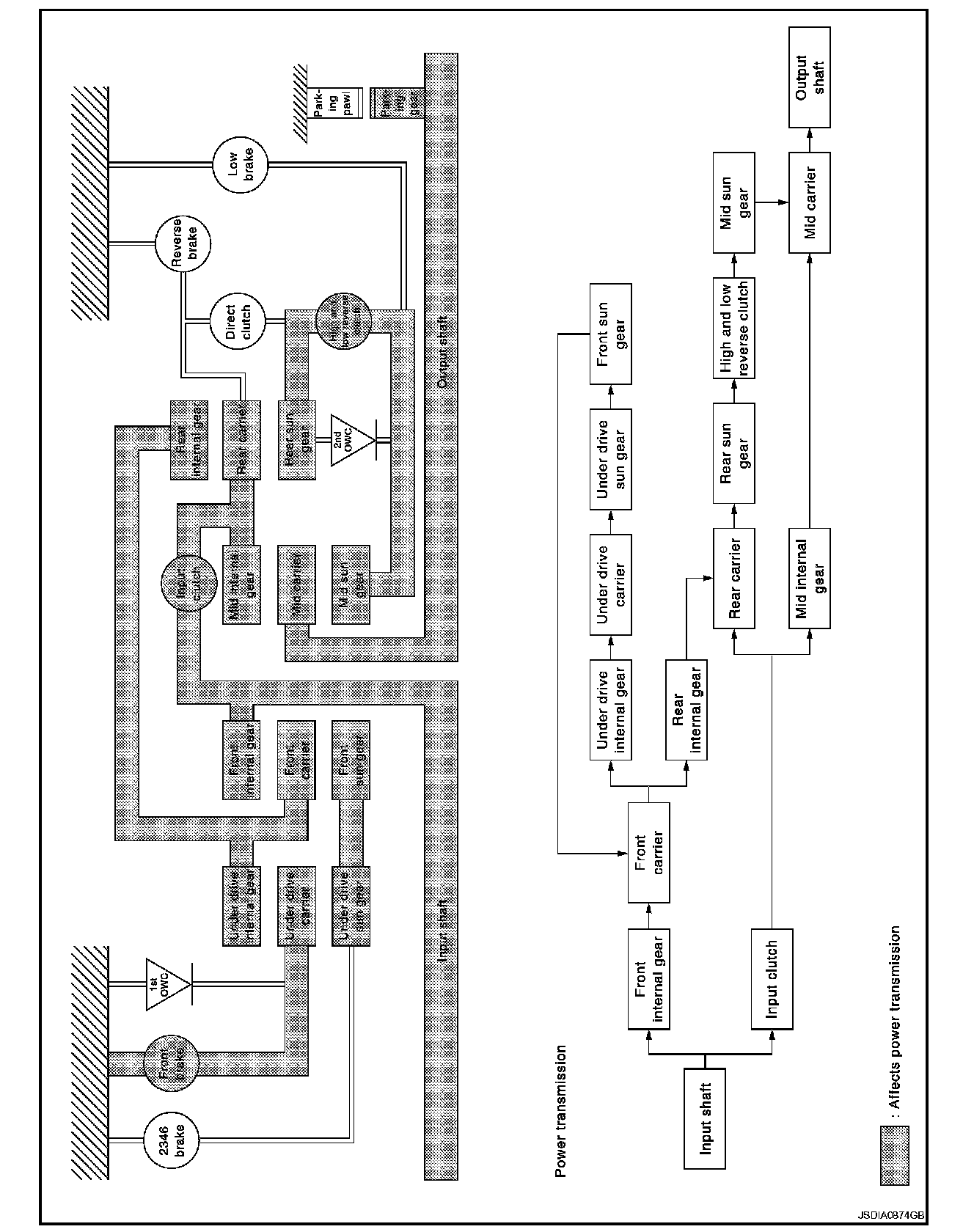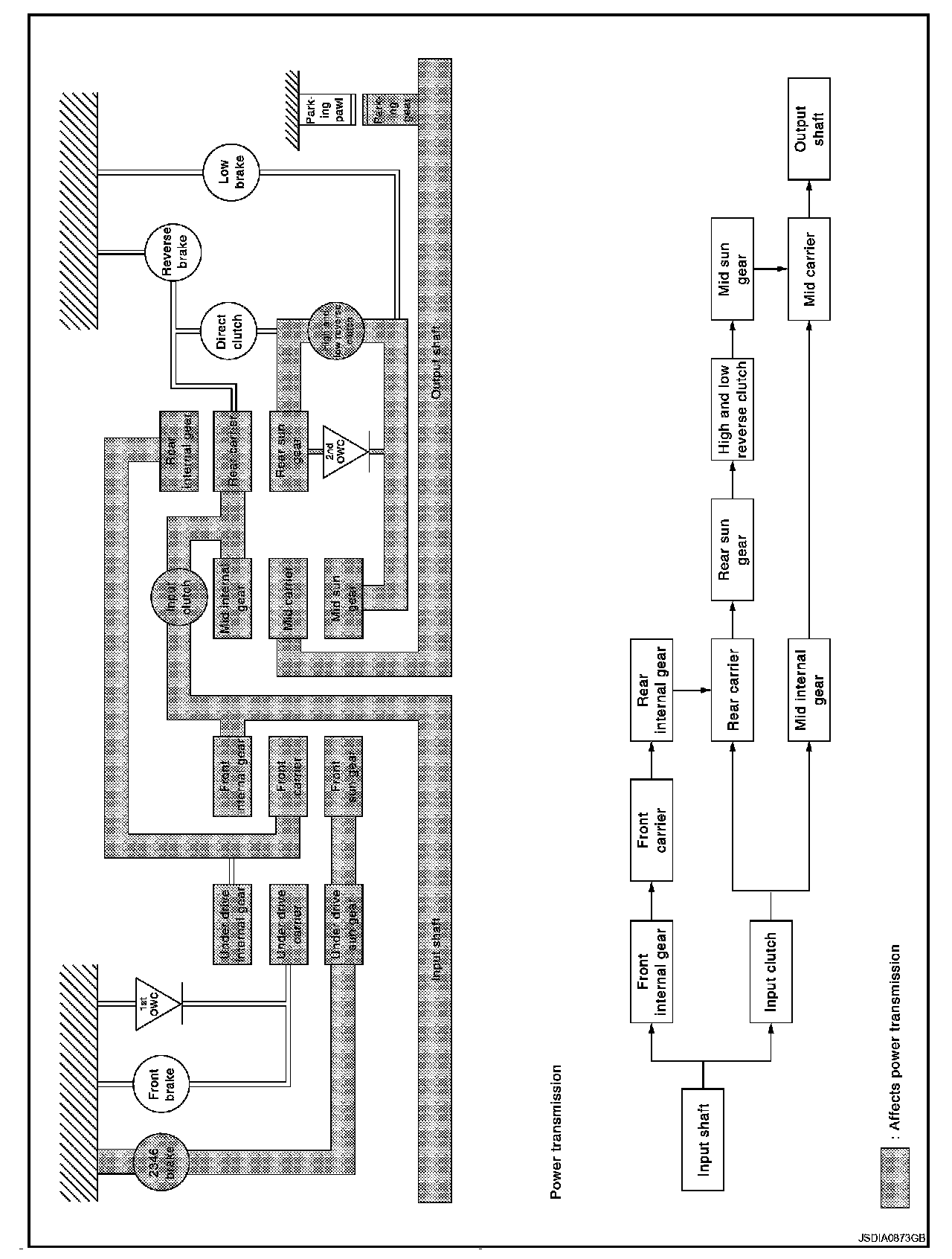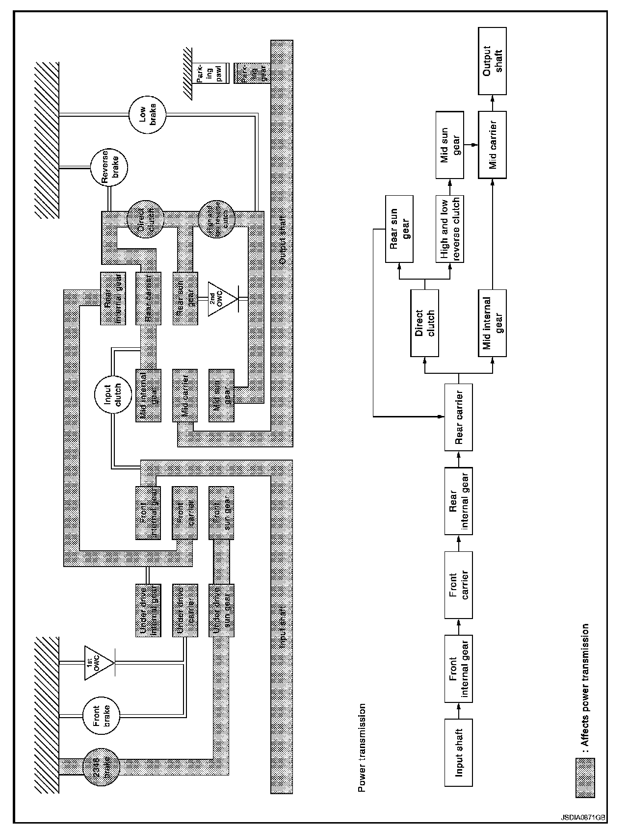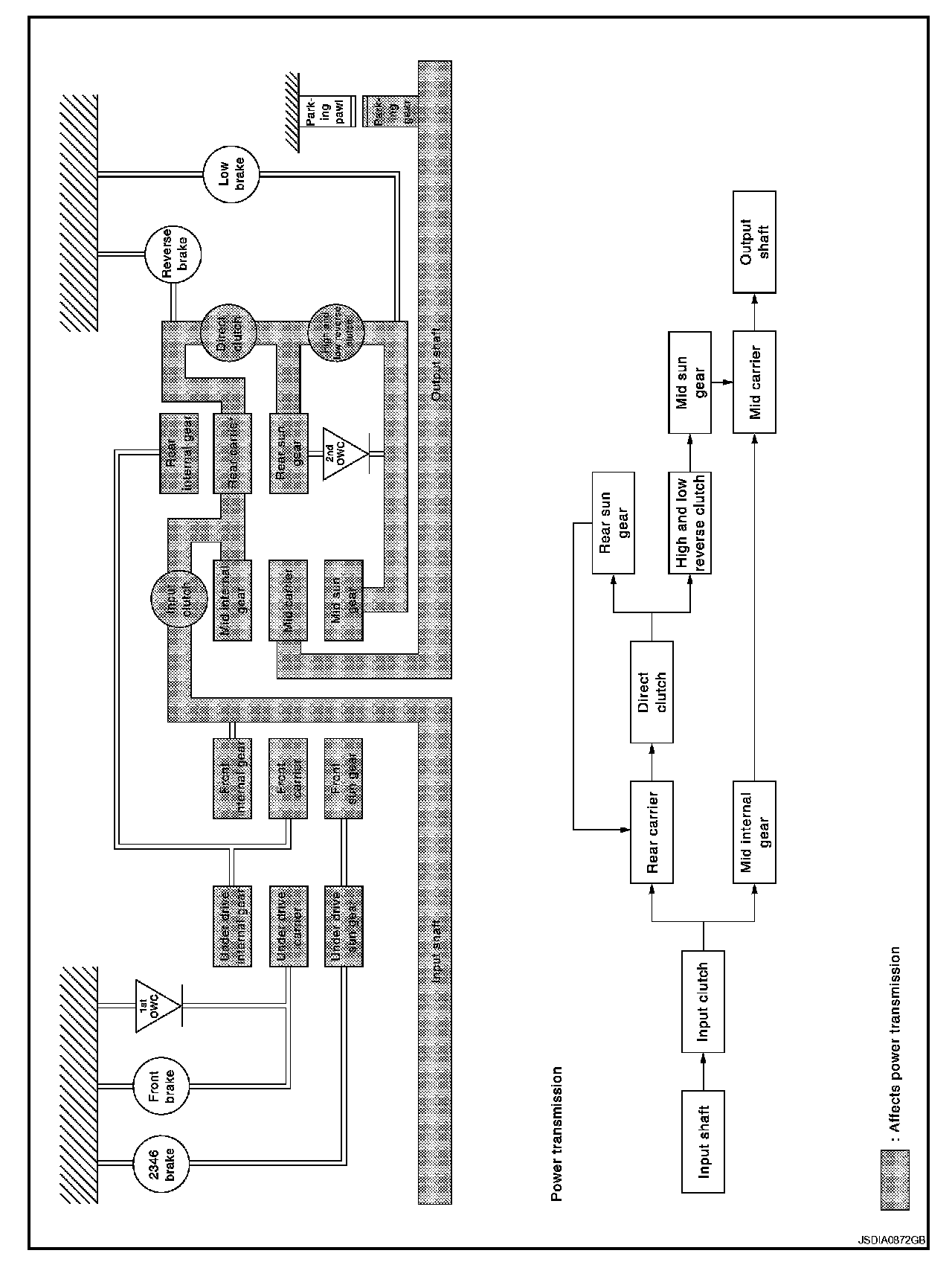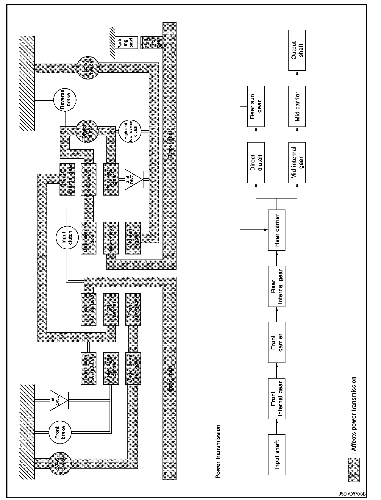 - The same as for the "N" position, since the low brake is released, so torque from the input shaft drive is not transmitted to the output shaft.