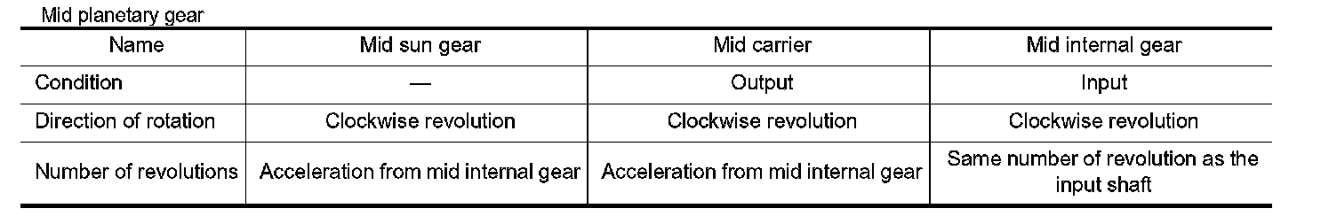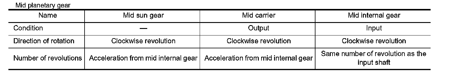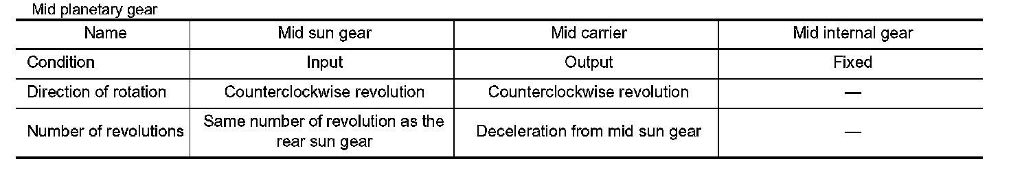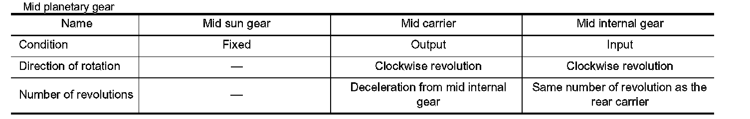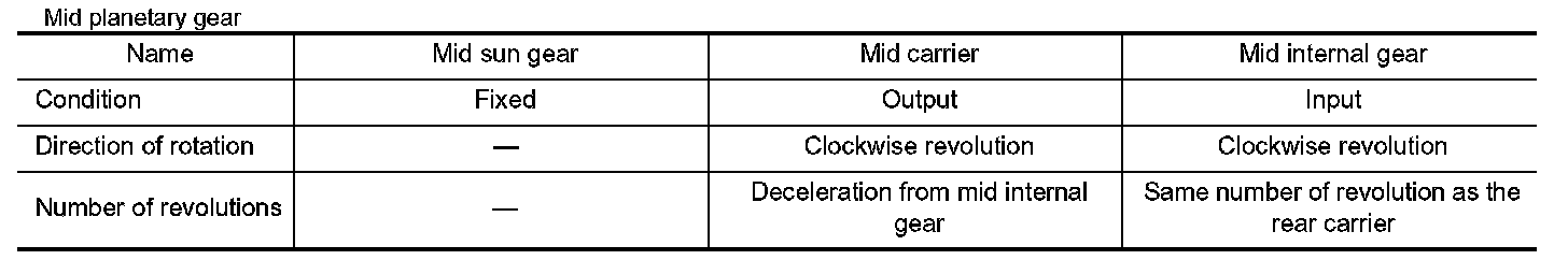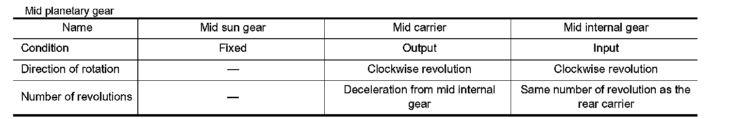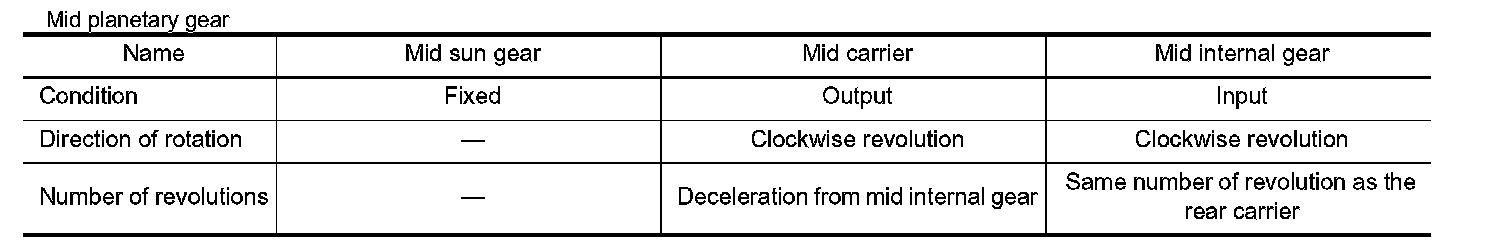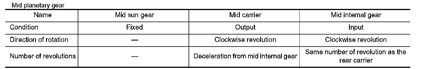 - The rear carrier and the mid internal gear are fixed by the reverse brake.
