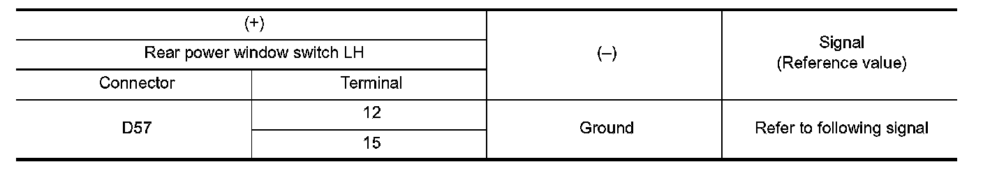 2. Check signal between rear power window switch LH harness connector and ground using oscilloscope.