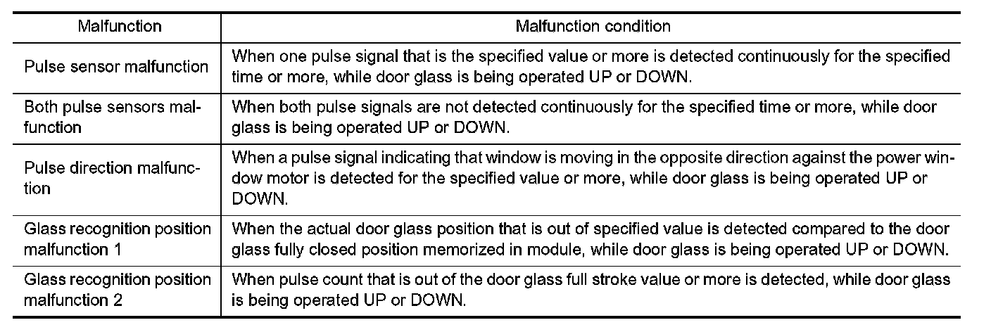 When fail-safe control is activated, perform initialization procedure to recover. If a malfunction is detected in power window switch or more, fail-safe control is activated again.