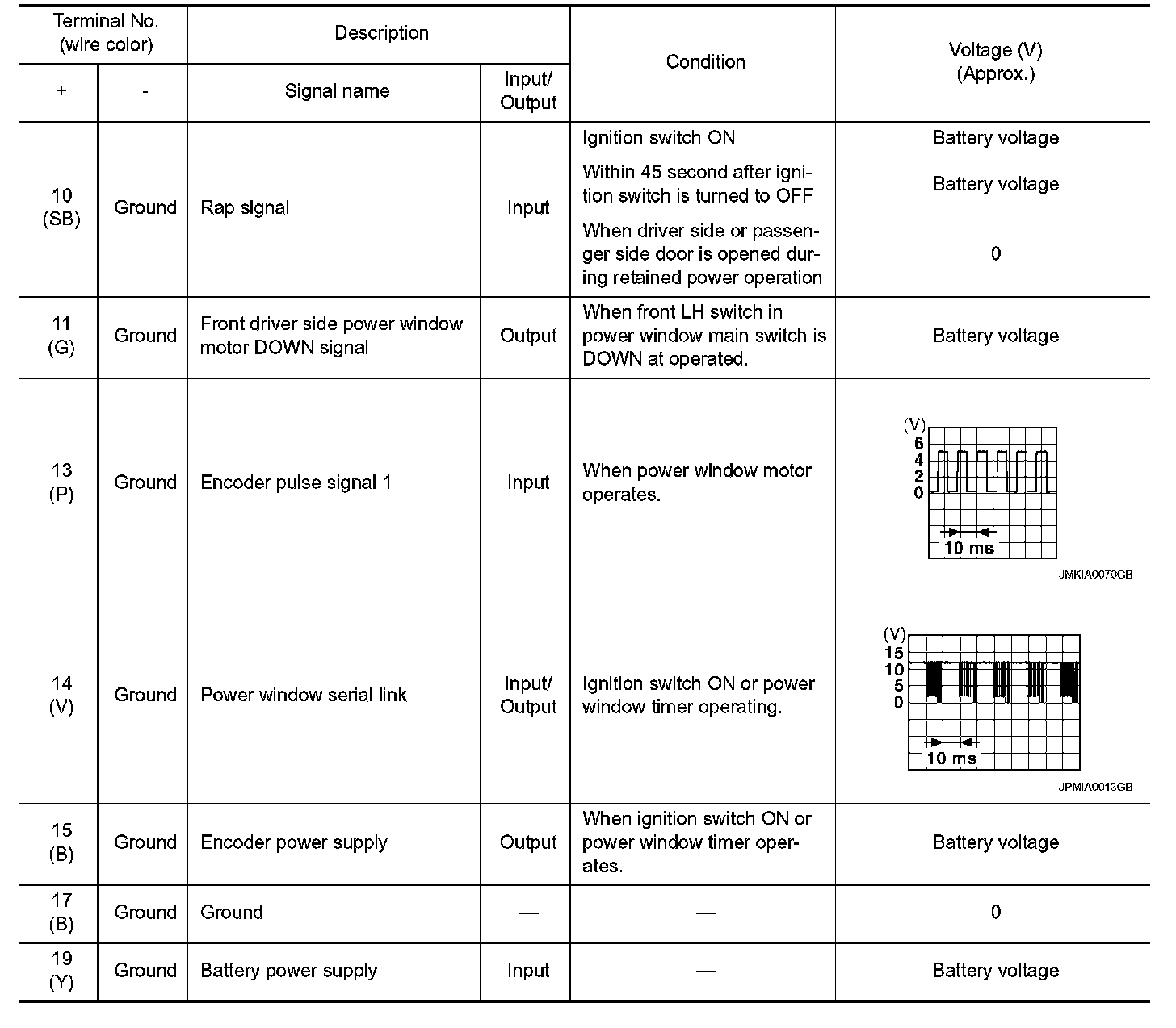 Pinout Values and Diagnostic Parameters