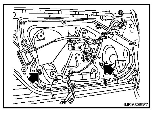 5. Operate the power window main switch to raise/lower the door window until the glass mounting bolts can be seen.