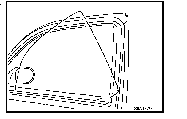 7. While holding the door glass, raise it at the rear end to pull the glass out of the sash toward the inside of the door.