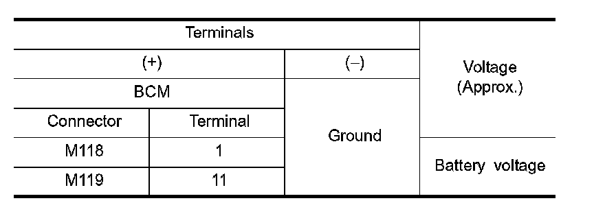 3. Check voltage between BCM harness connector and ground.