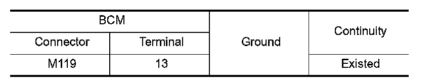 Check continuity between BCM harness connector and ground.