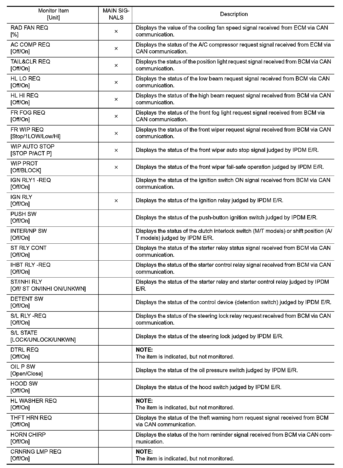CONSULT-III performs the following functions via CAN communication with IPDM E/R.