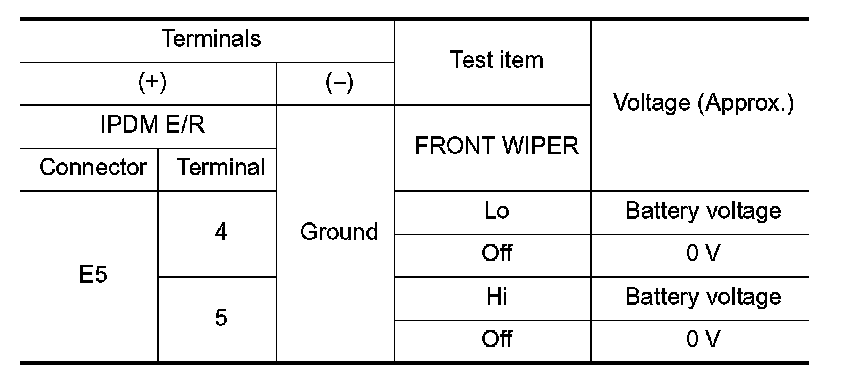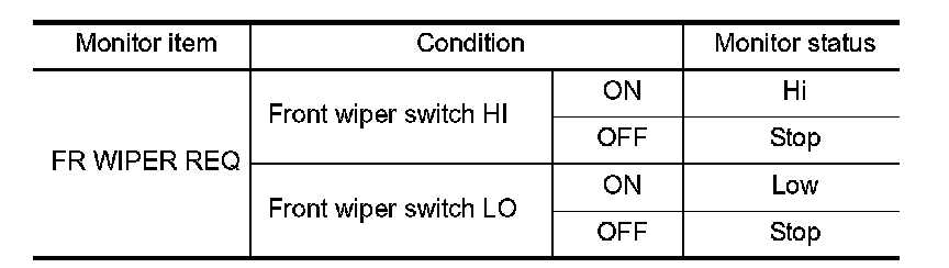 2. With operating the test item, check that front wiper LO/HI operation and OFF.