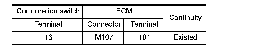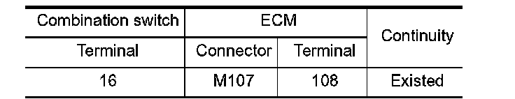 3. Check resistance between combination switch harness connector terminals under the following conditions.