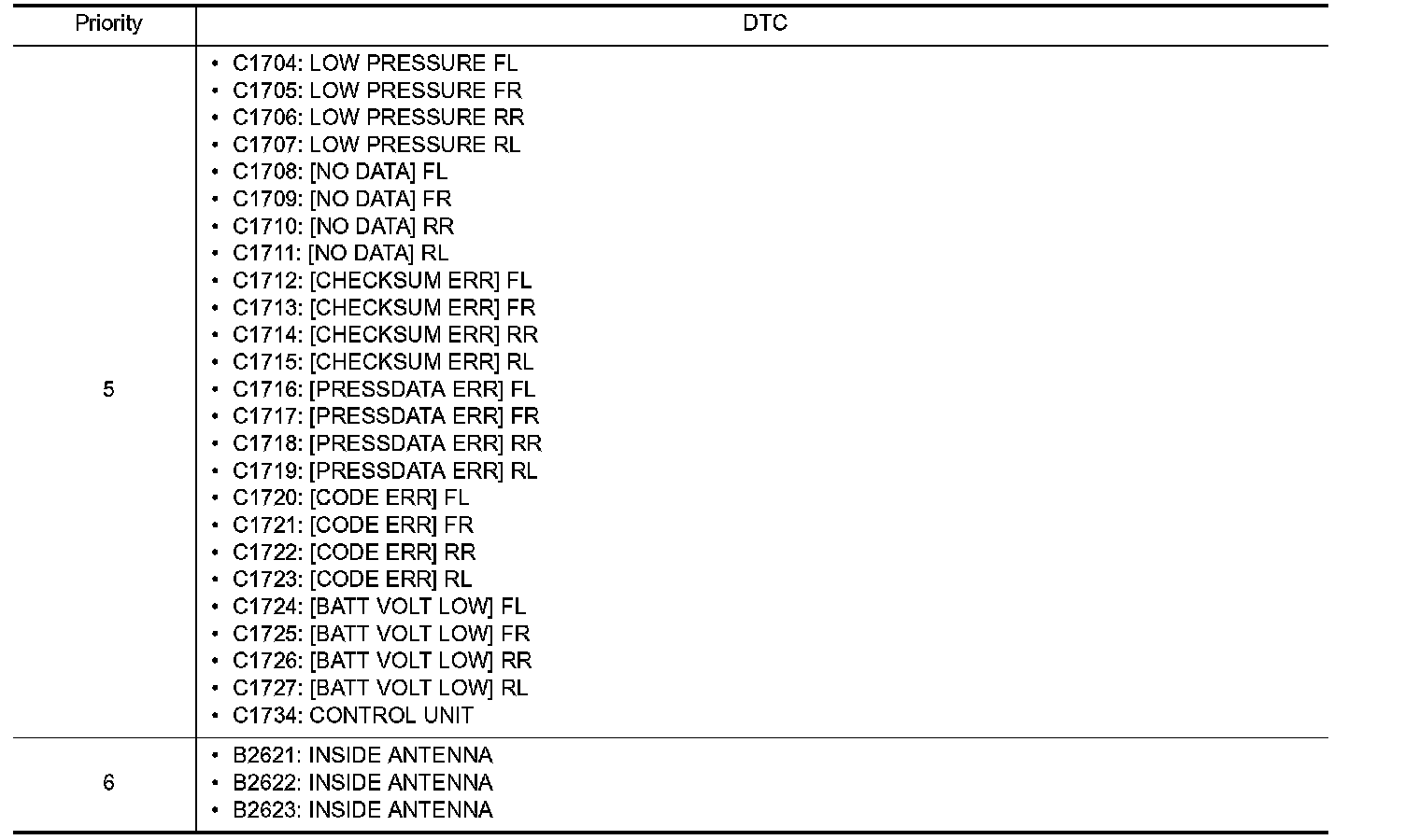DTC Inspection Priority Chart