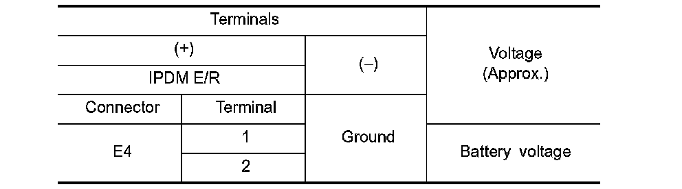 3. Check voltage between IPDM E/R harness connector and the ground.