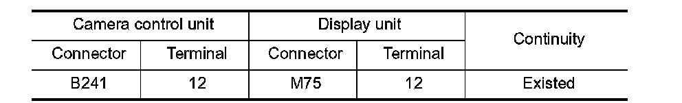 3. Check continuity between camera control unit harness connector and display unit harness connector.
