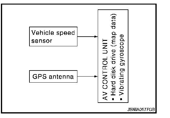 - The AV control unit controls navigation function while GPS tuner has built-in map data, GYRO (angle speed sensor), on the HDD (Hard Disk Drive).