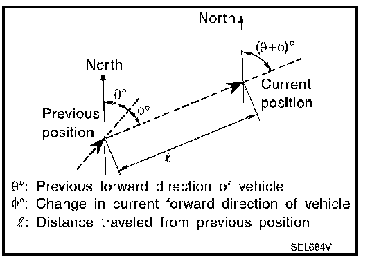 The navigation system periodically calculates the current vehicle position according to the following three types of signals.