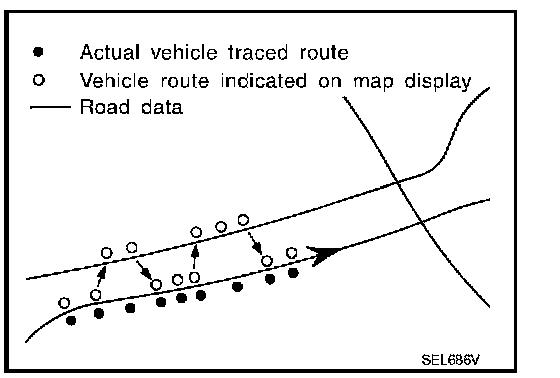 Also, map-matching does not function correctly when road pattern stored in the map data and the actual road pattern are different due to repair, etc.