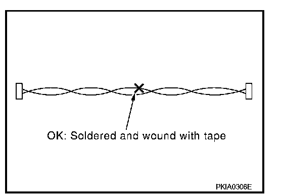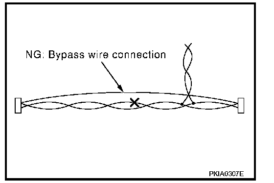- Do not perform bypass wire connections for the repair parts. (The spliced wire will become separated and the characteristics of twisted line will be lost.)