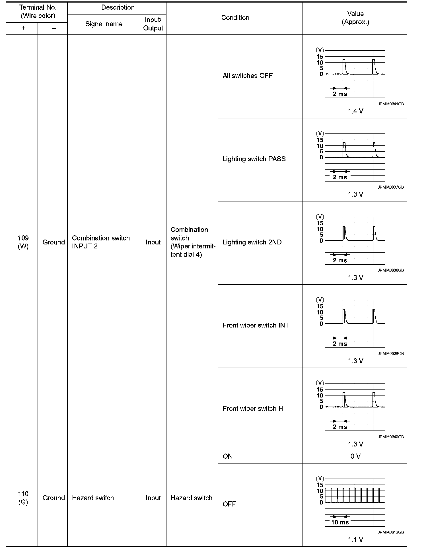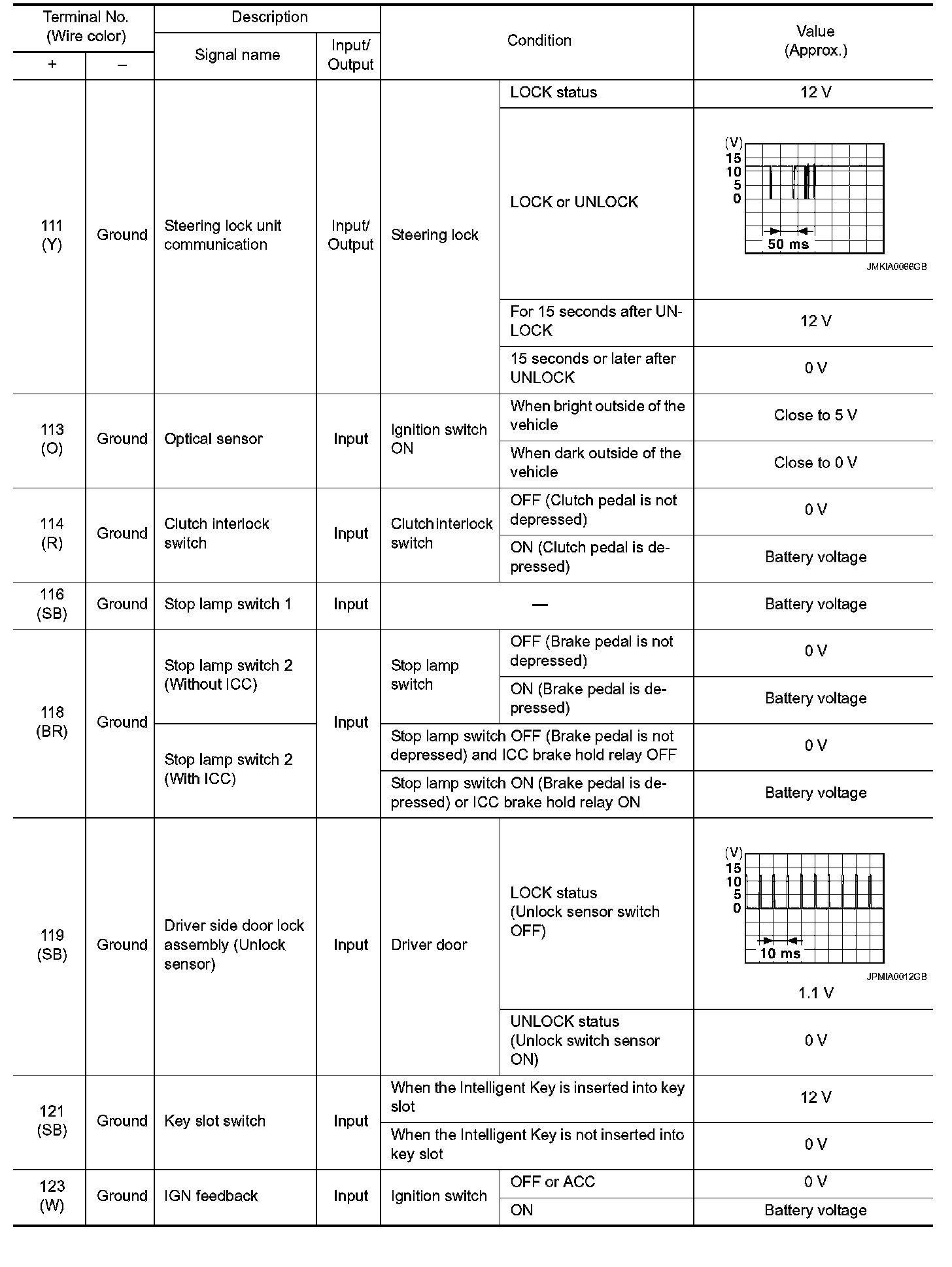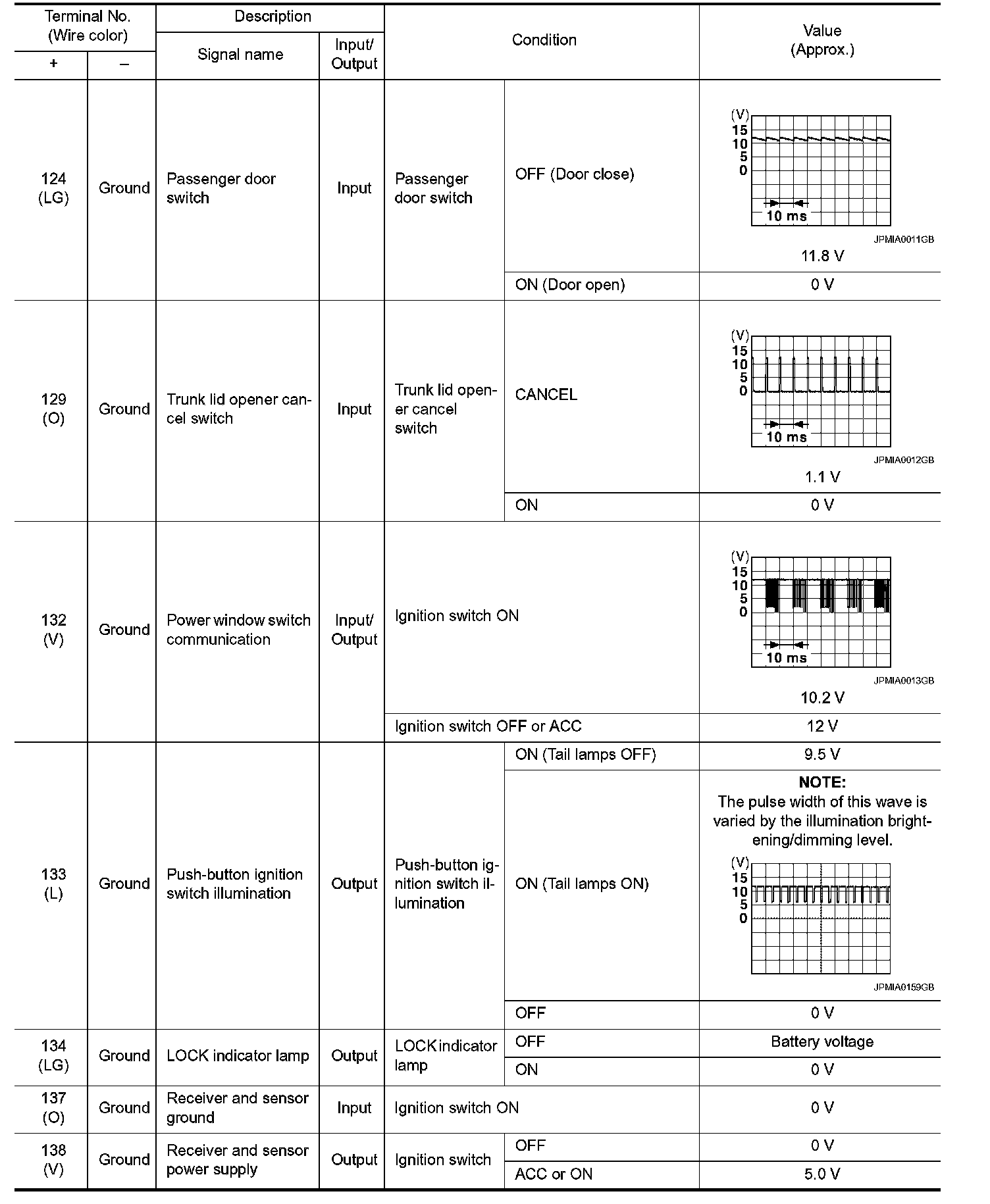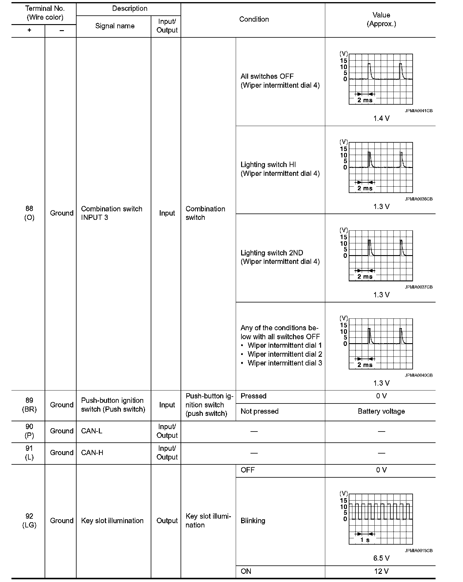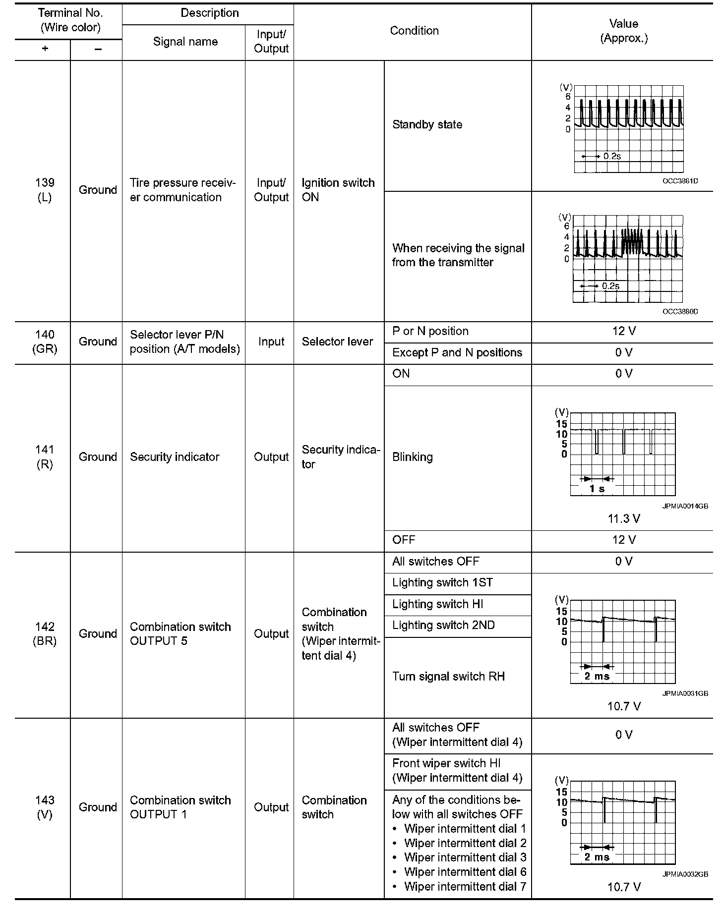 Pinout Values and Diagnostic Parameters