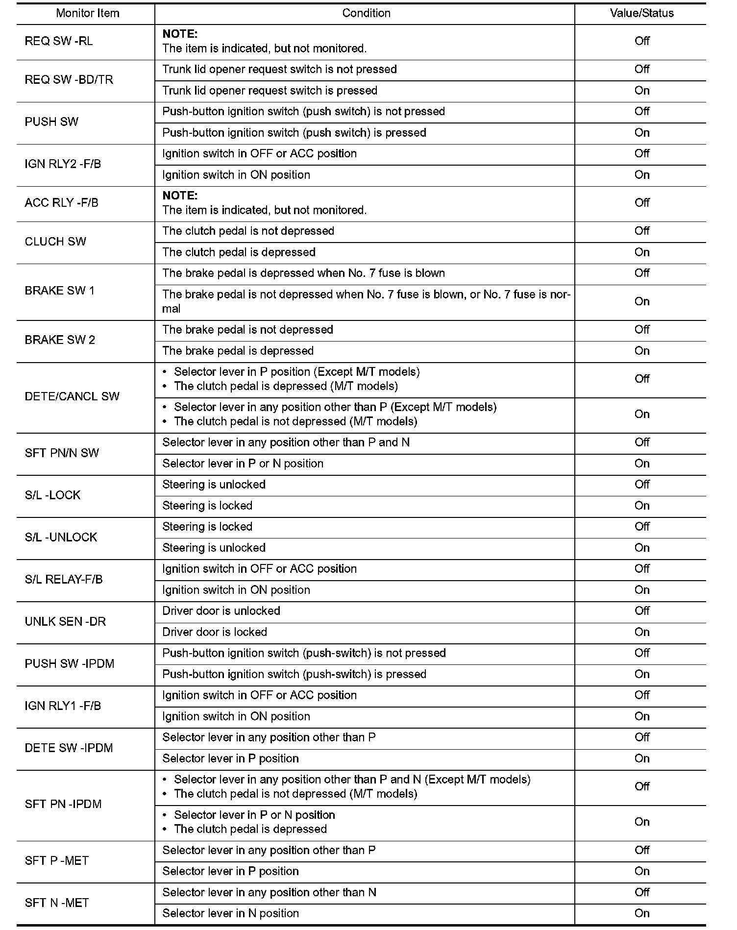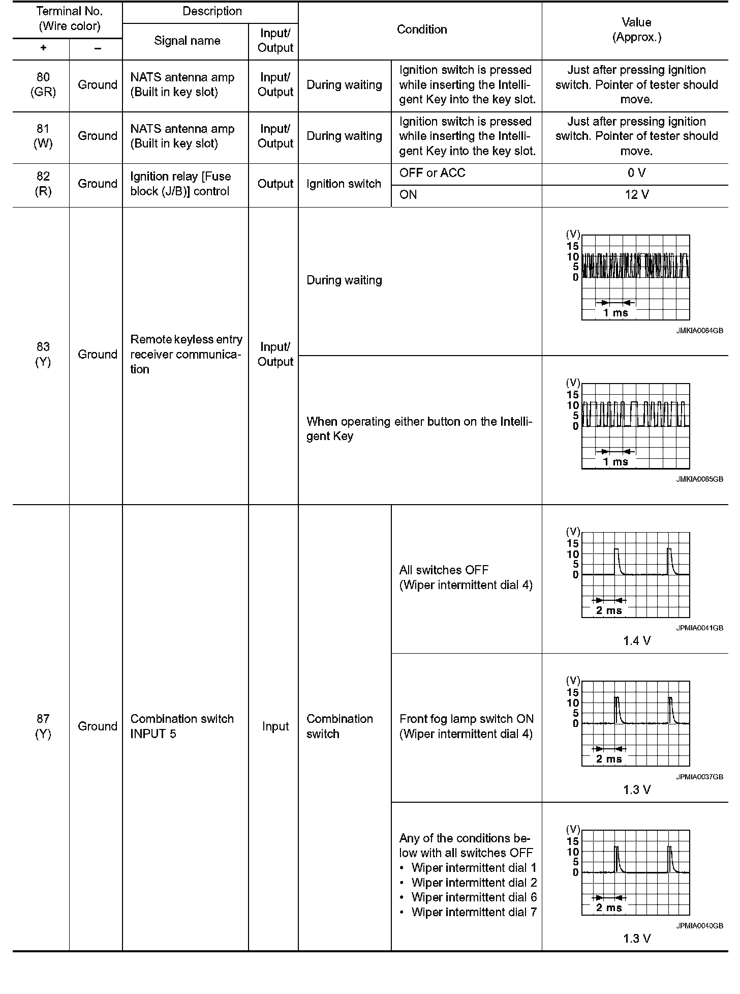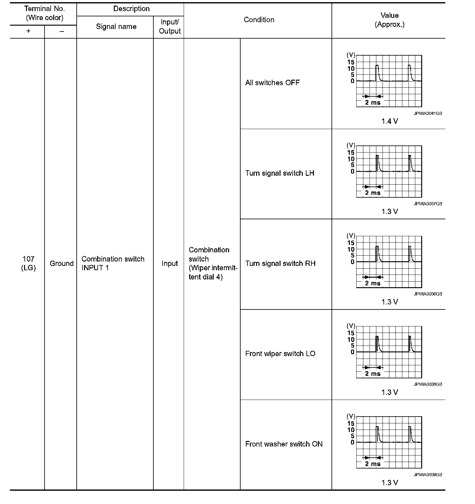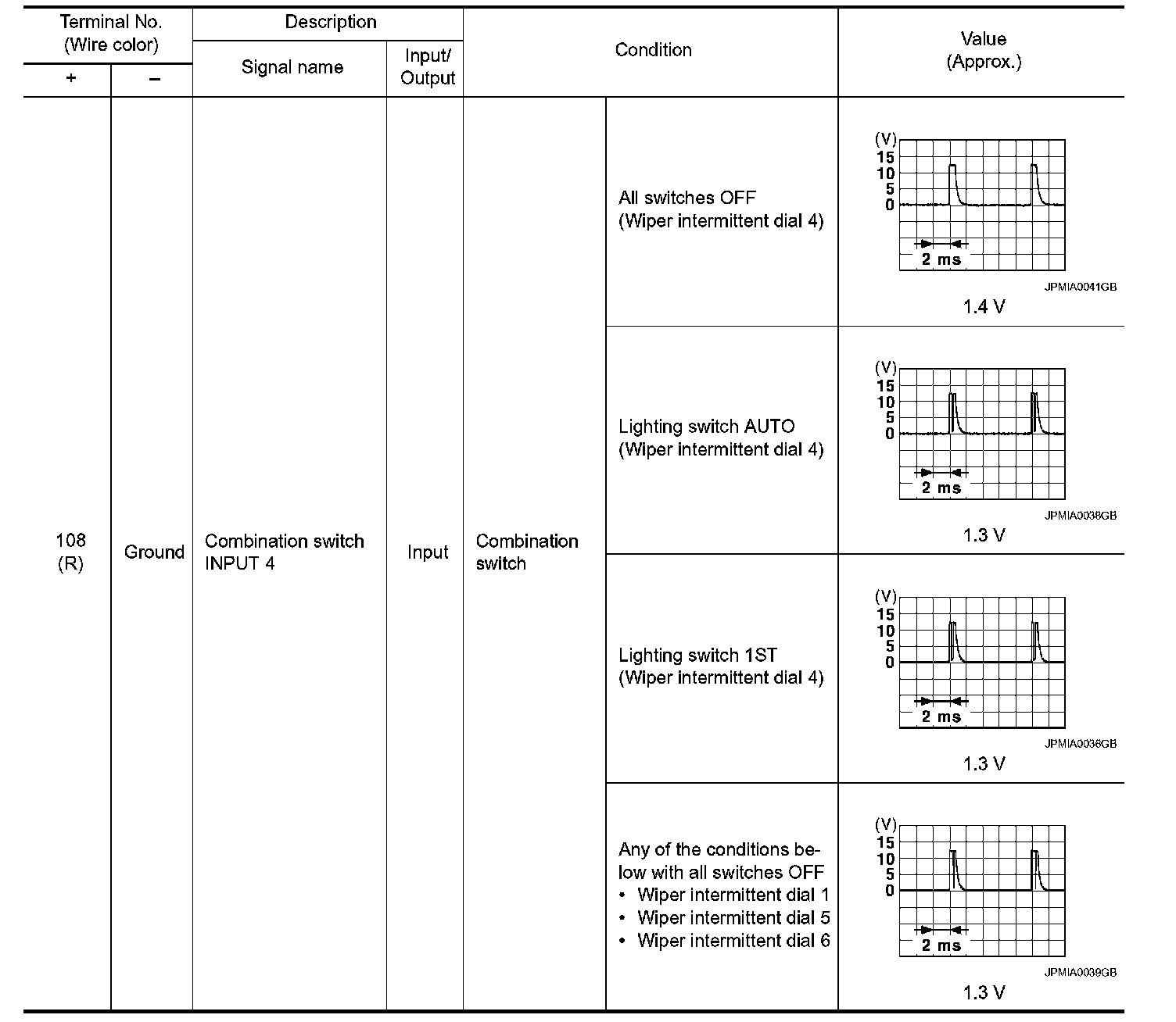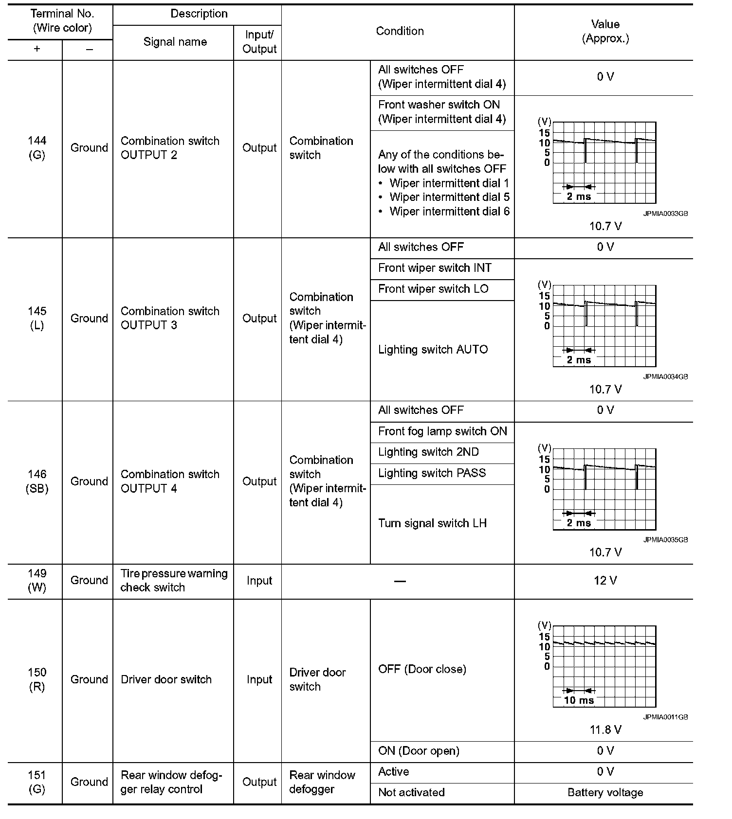 Pinout Values and Diagnostic Parameters