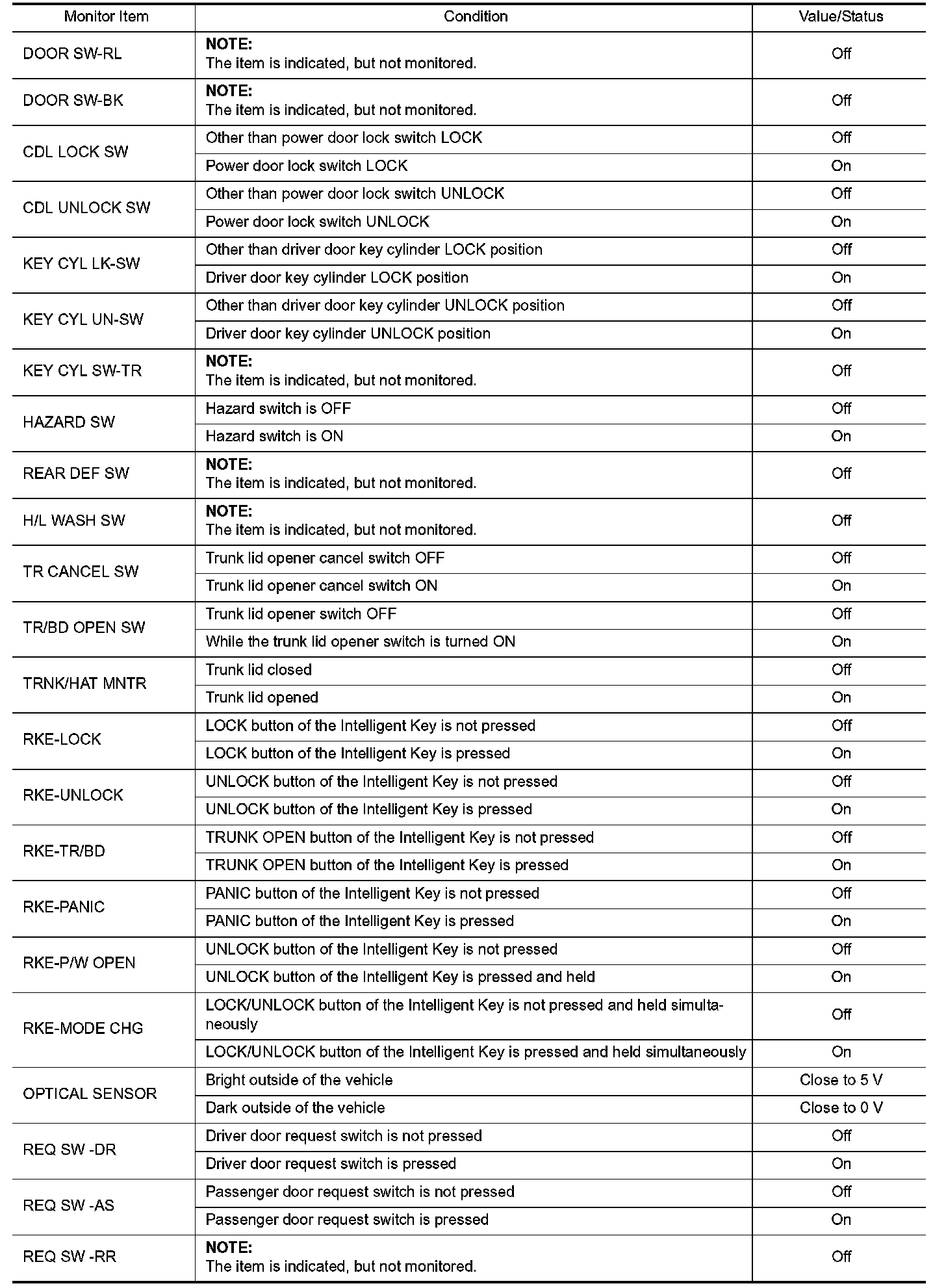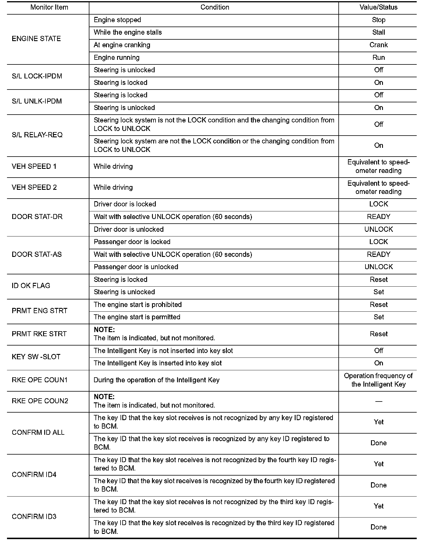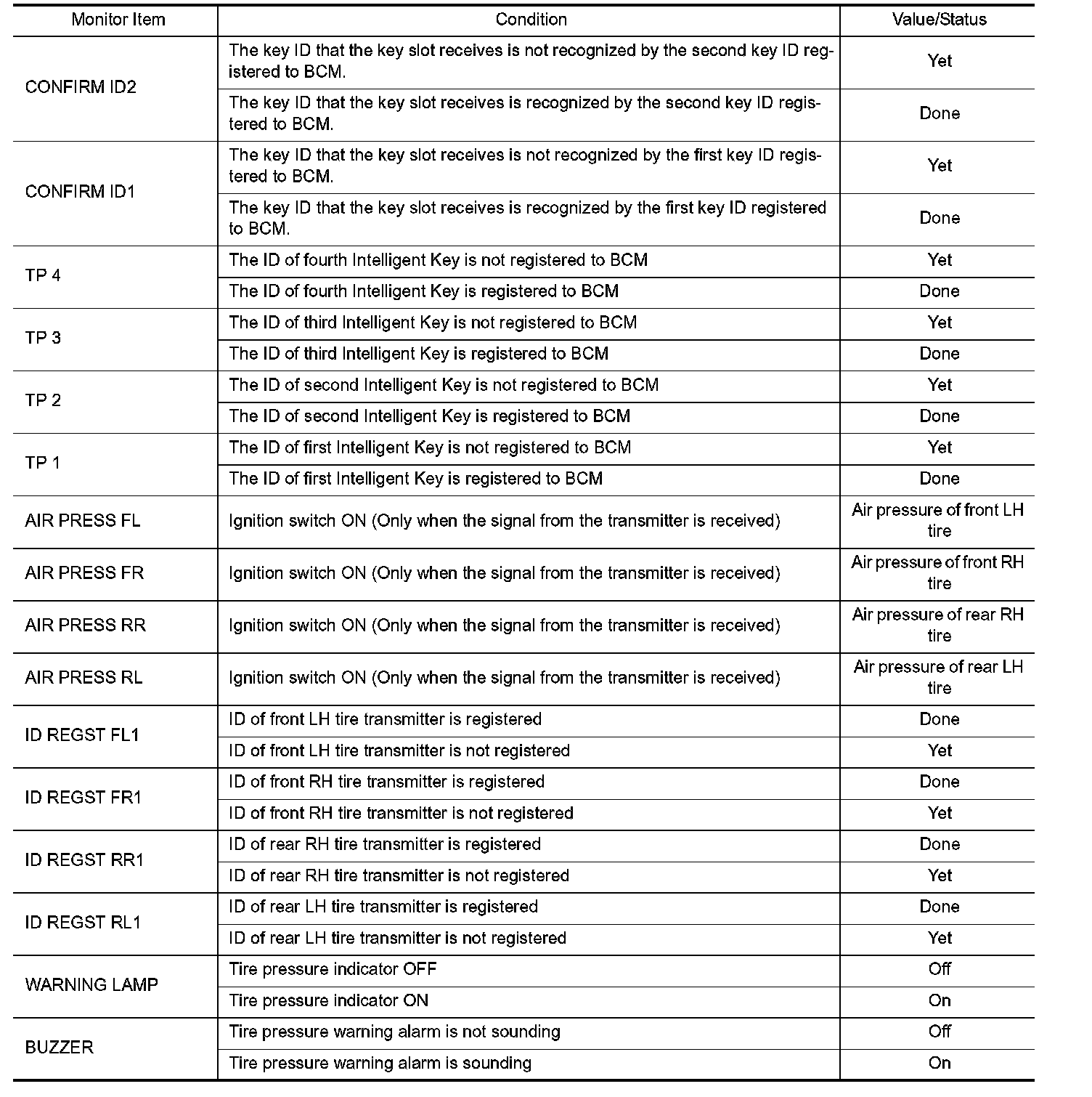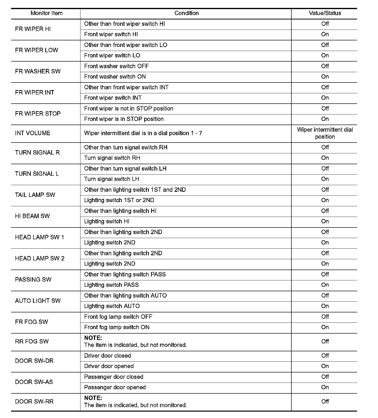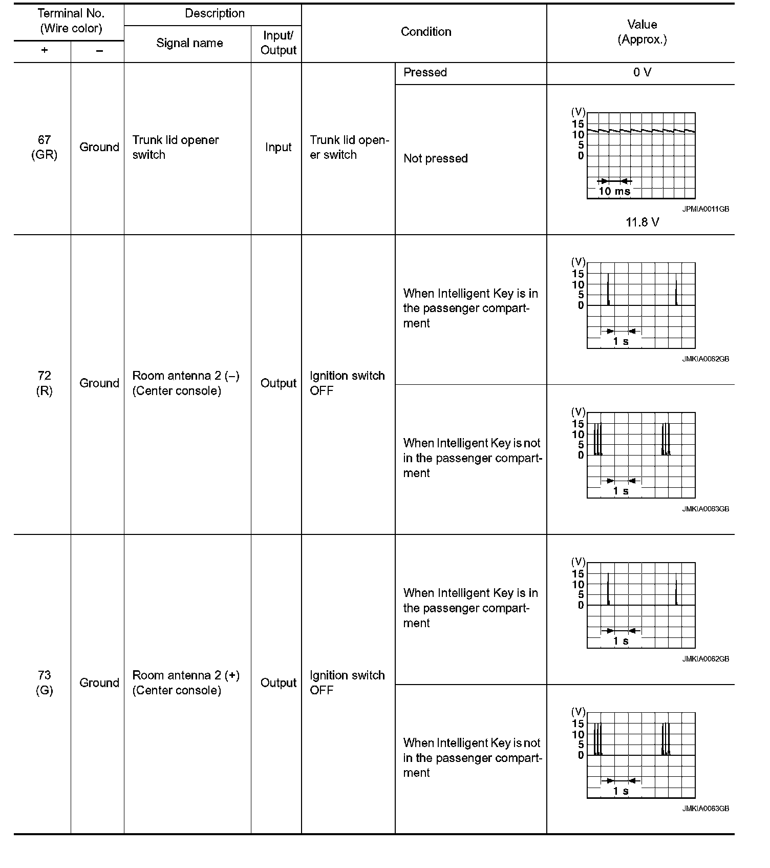 Pinout Values and Diagnostic Parameters