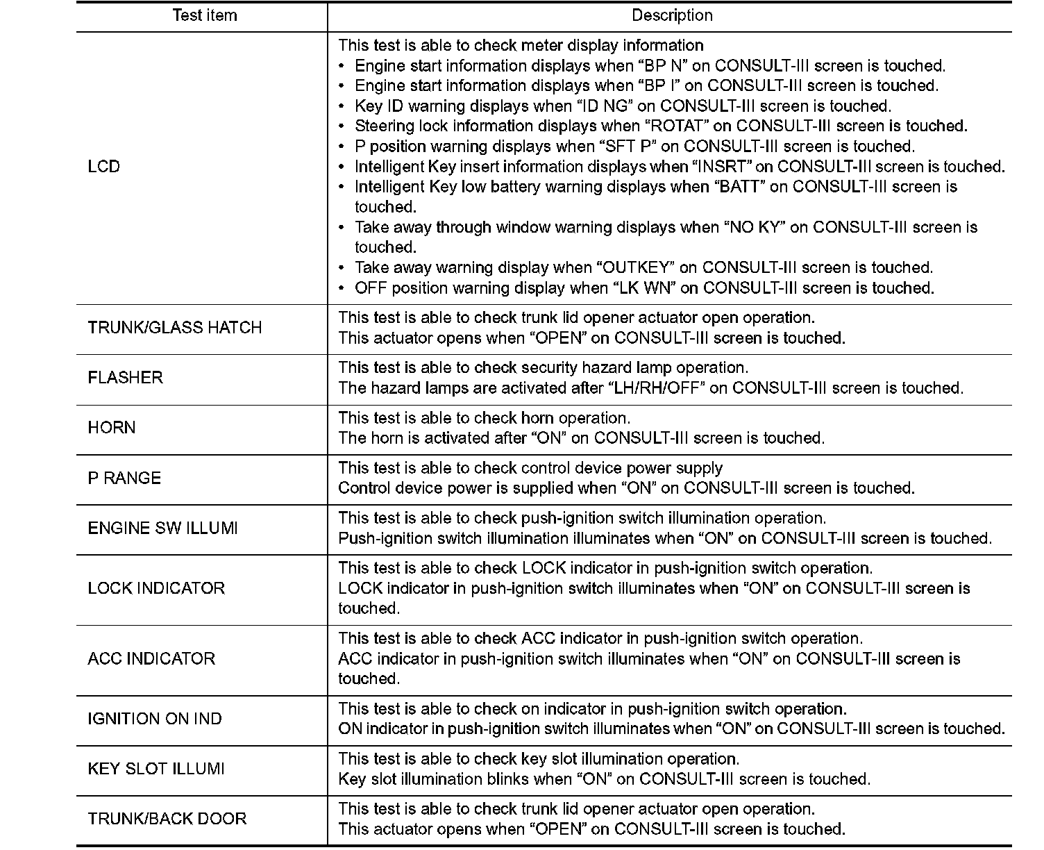 INTELLIGENT KEY : CONSULT-III Function (