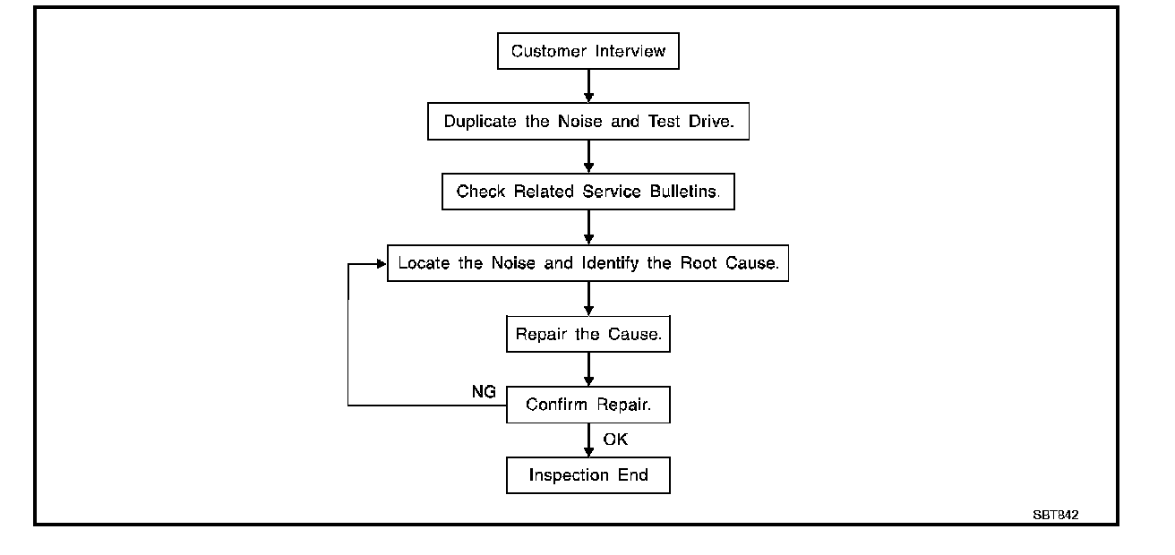 - If it is difficult to duplicate the noise, drive the vehicle slowly on an undulating or rough road to stress the vehicle body.
