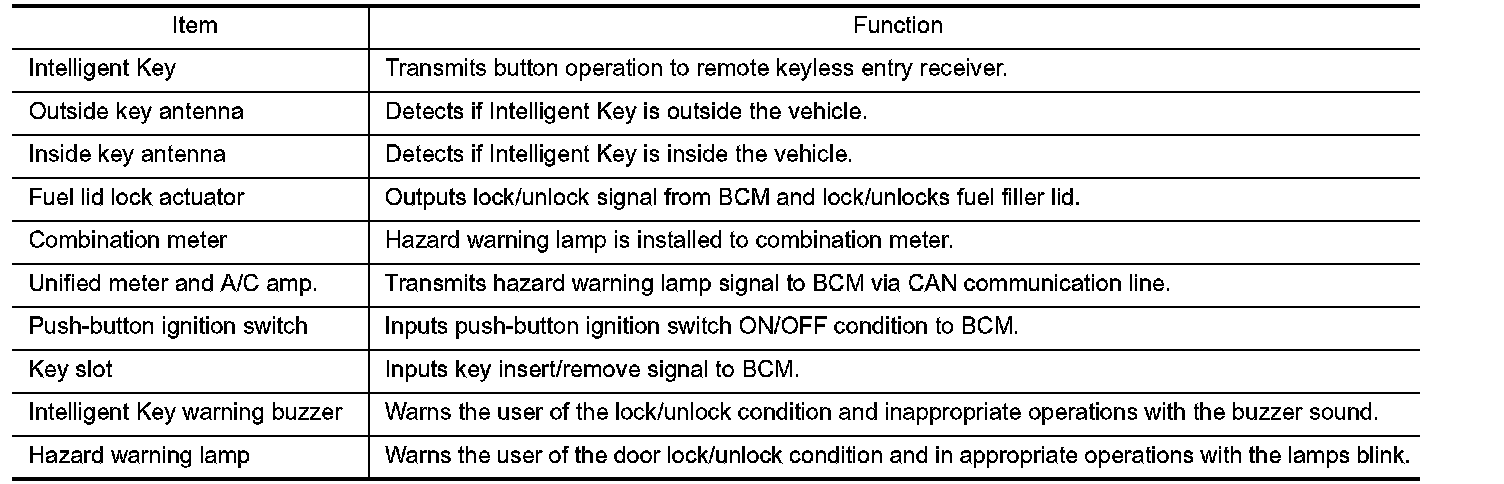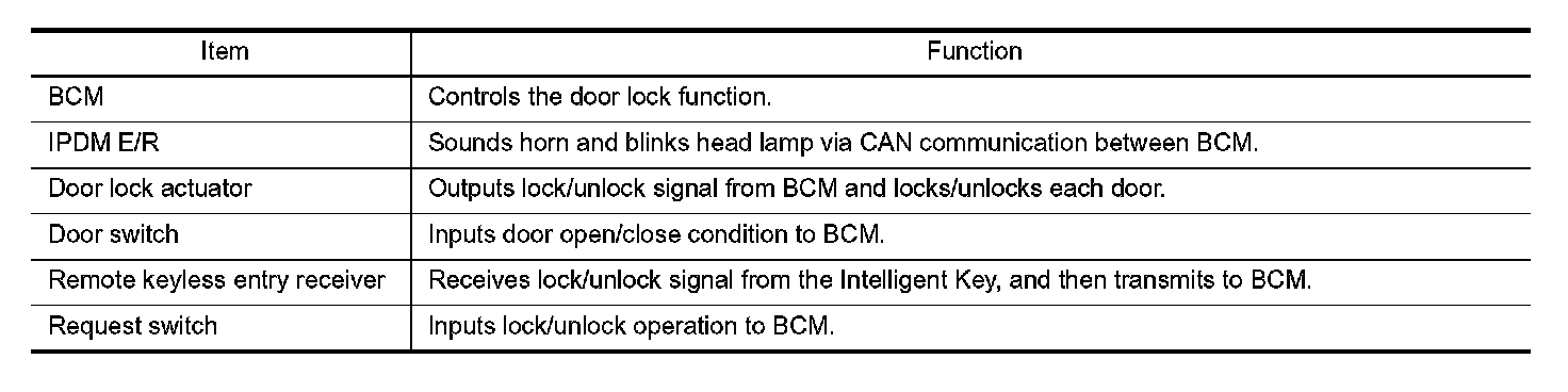 DOOR LOCK FUNCTION : Component Description