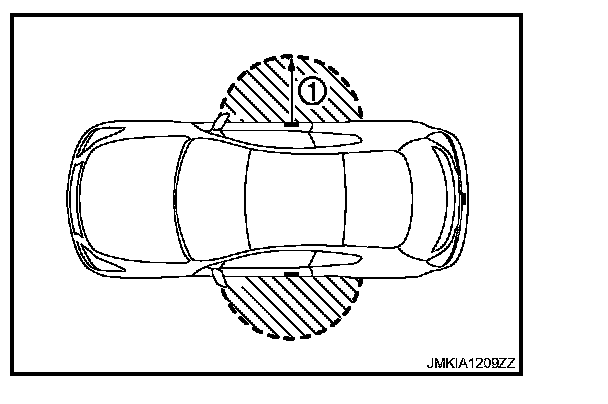 The outside key antenna detection area of door lock/unlock function is in the range of approximately 80 cm (31.50 in) surrounding the driver, passenger door handles (1) and the back door request switch