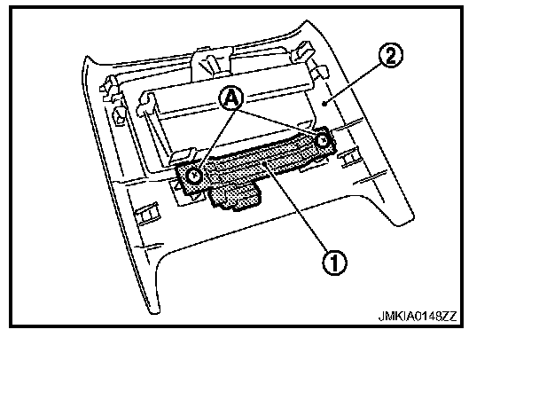 3. Remove the inside key antenna mounting screw (A), and then remove inside key antenna (console) (1) from console rear finisher (2).