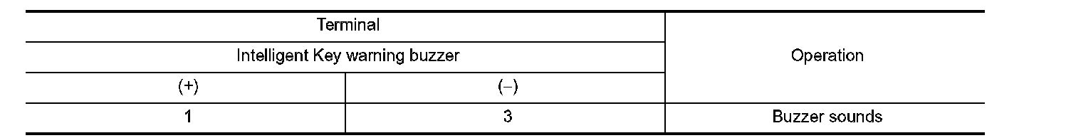 3. Connect battery power supply directly to Intelligent Key warning buzzer terminals and check the operation.