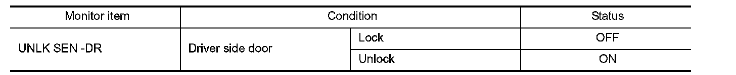 Check ("UNLK SEN -DR") in "Data Monitor" mode using CONSULT-III.