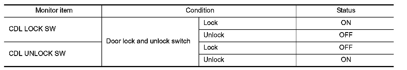 Check ("CDL LOCK SW ", "CDL UNLOCK SW") in "Data Monitor" mode using CONSULT-III.
