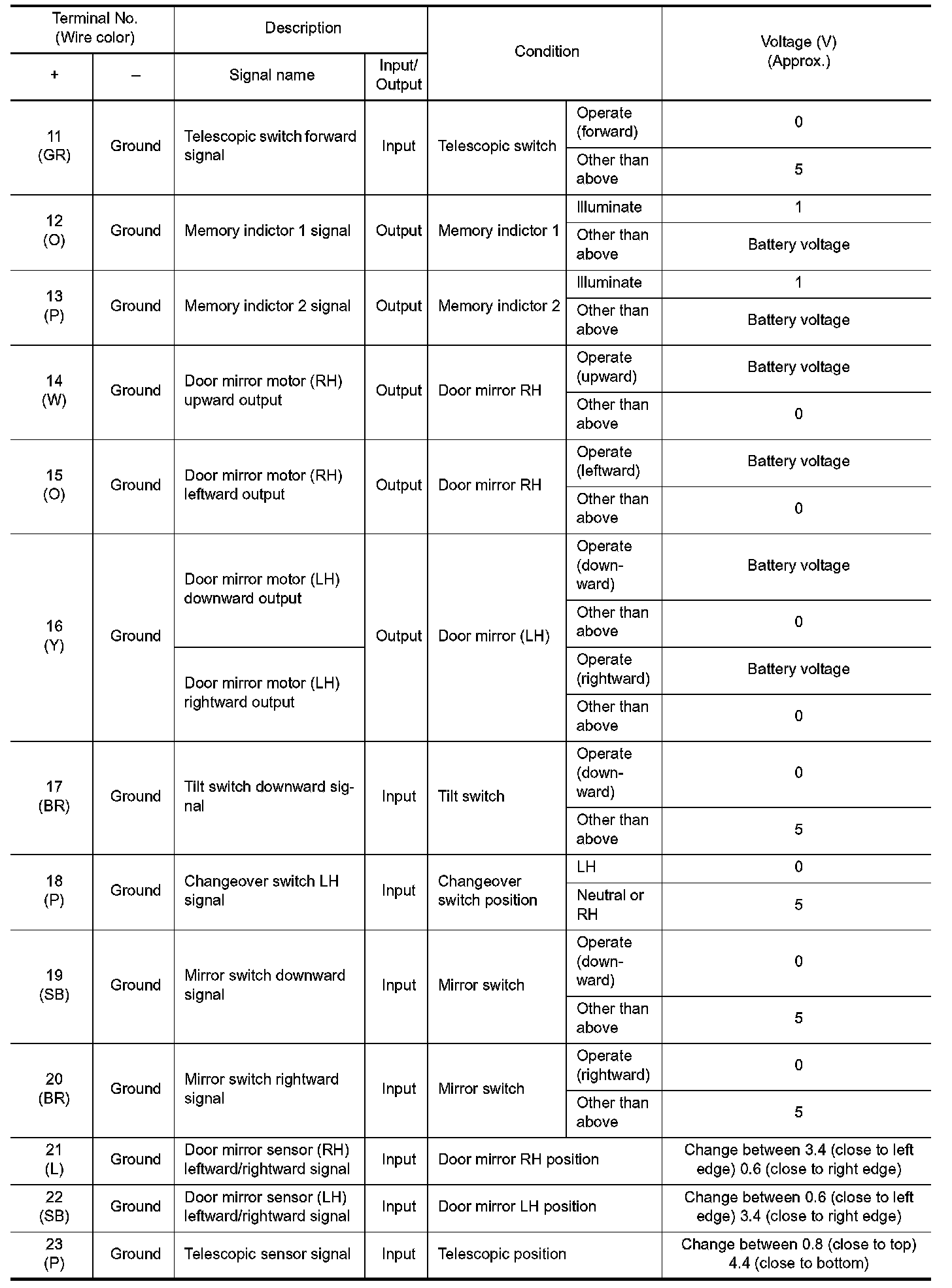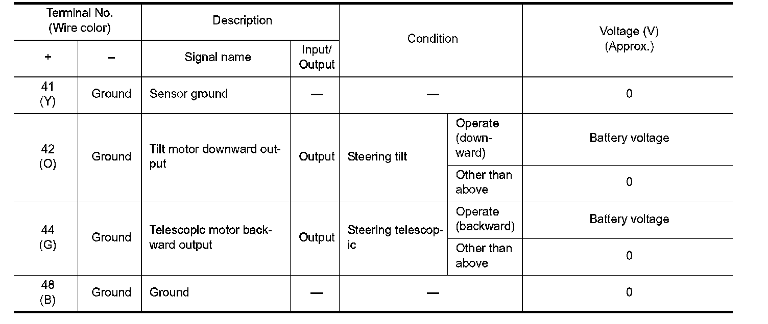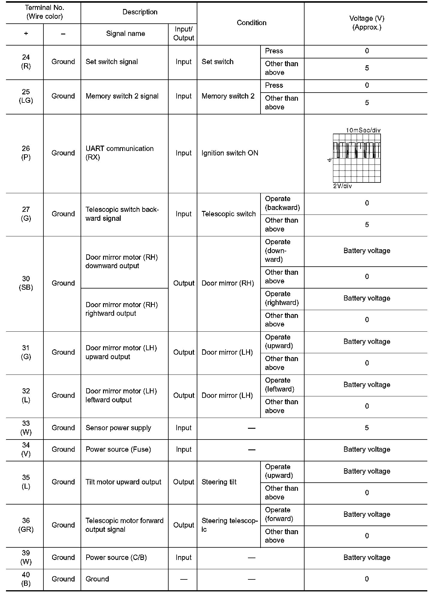 Pinout Values and Diagnostic Parameters