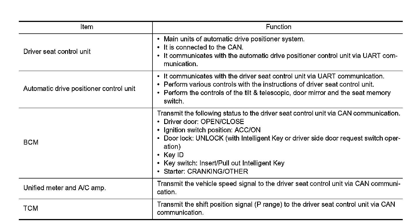 AUTOMATIC DRIVE POSITIONER SYSTEM : Component Description