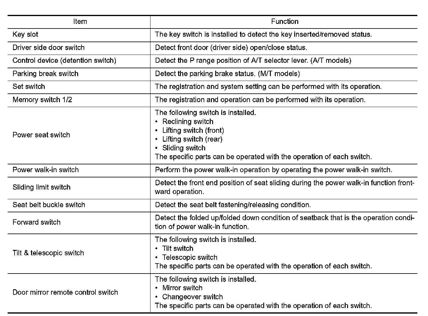 - The seat control unit adopts the sleep mode to reduce the electric power consumption.