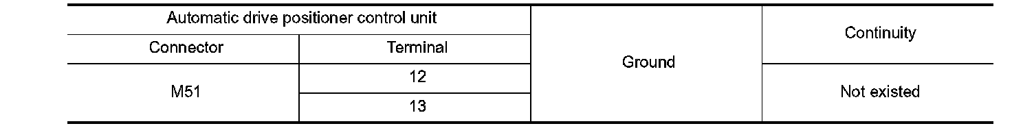 4. Check continuity between automatic drive positioner control unit harness connector and ground.