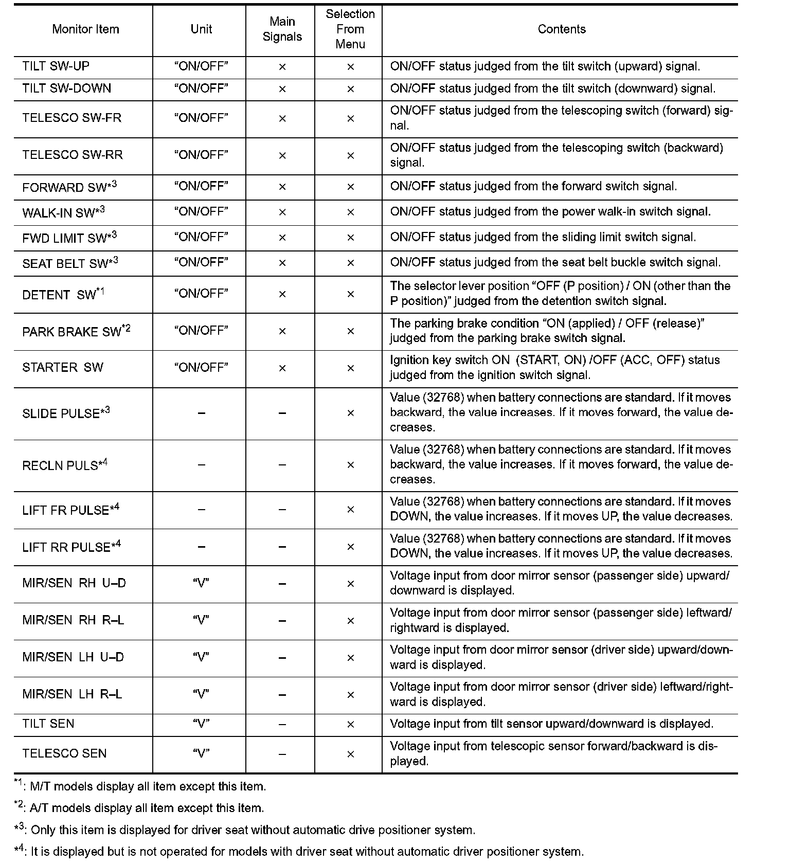 DIAGNOSIS SYSTEM (DRIVER SEAT C/U)