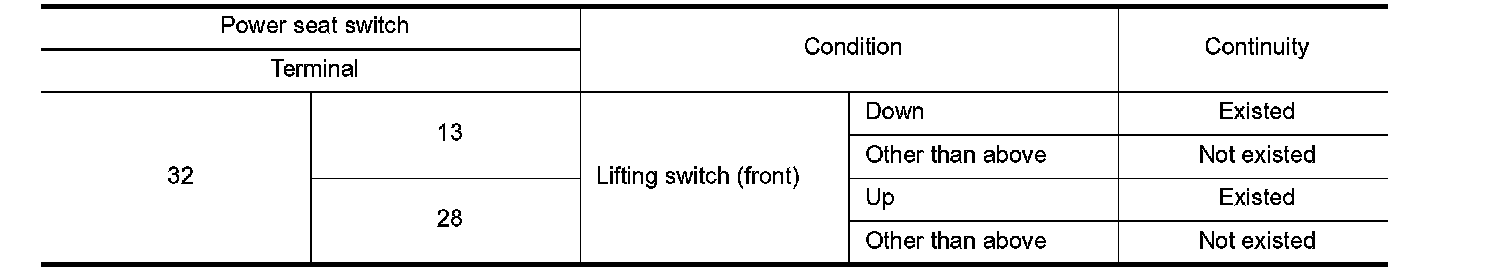 3. Check continuity between power seat switch terminals.