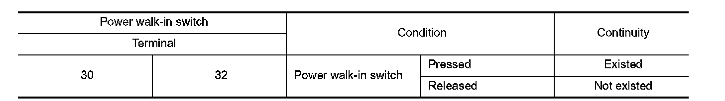 3. Check continuity between power walk-in switch terminals.