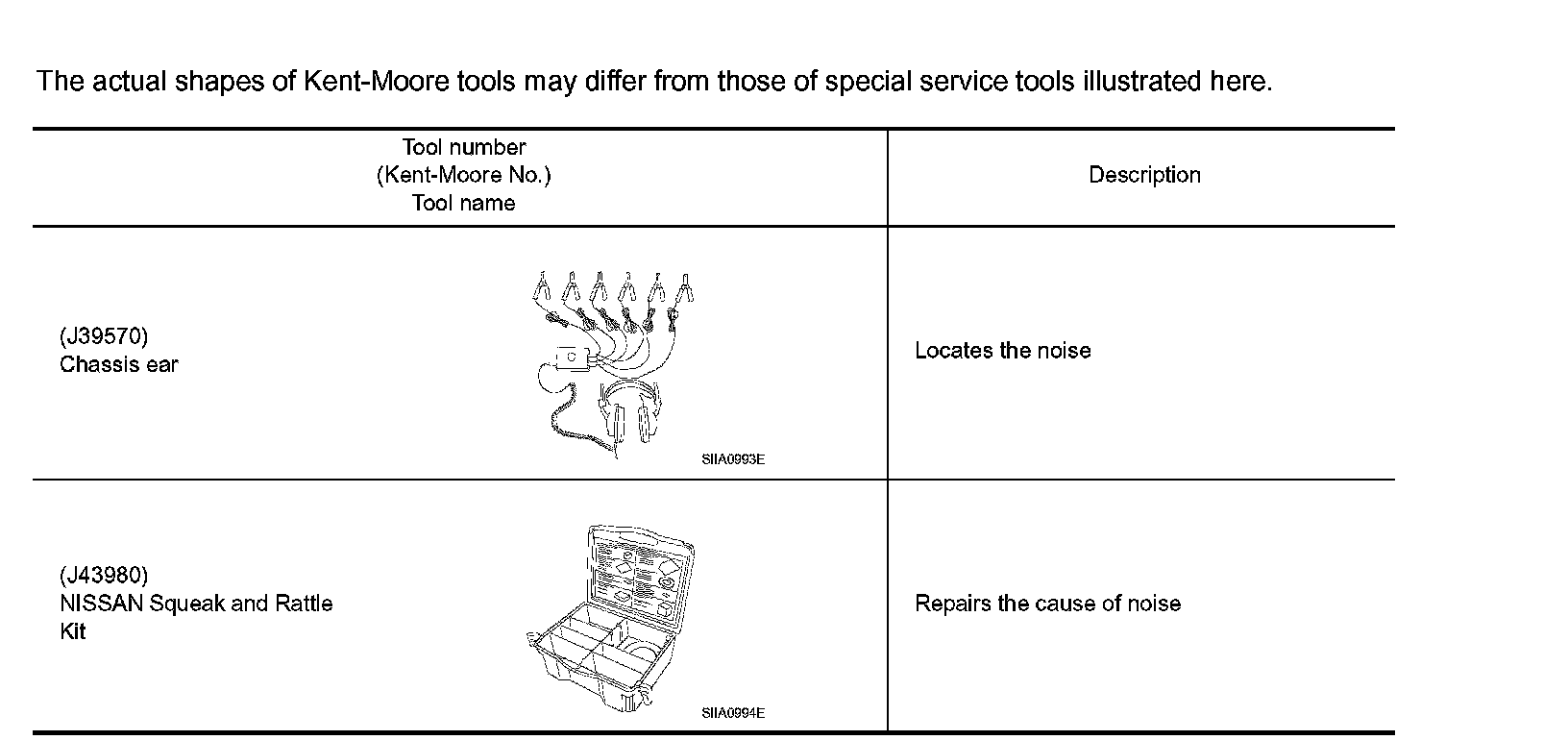 The actual shapes of Kent-Moore tools may differ from those of special service tools illustrated here.