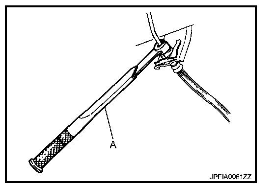- Tighten the brake tube flare nut to the specified torque with a flare nut torque wrench (A).