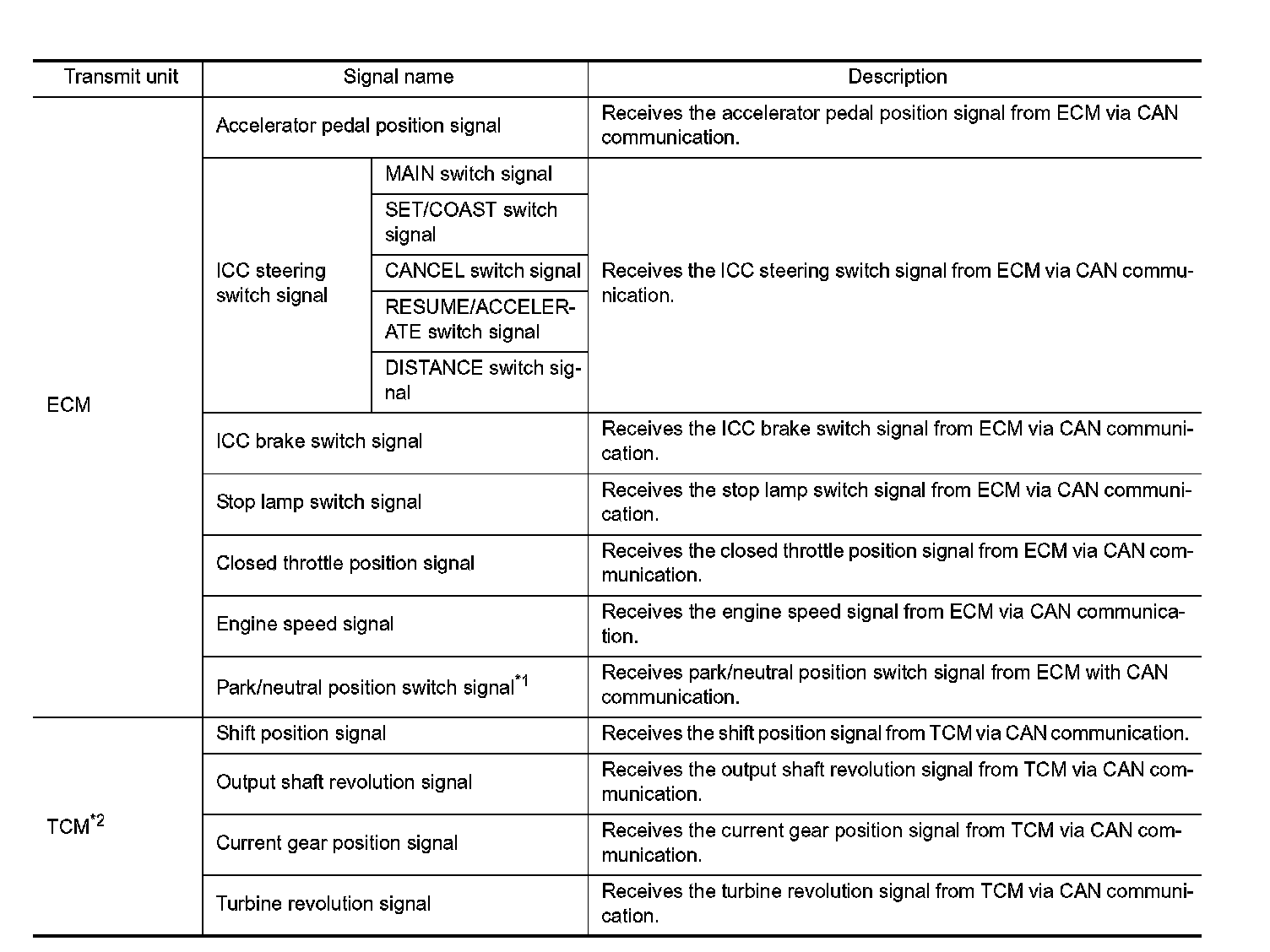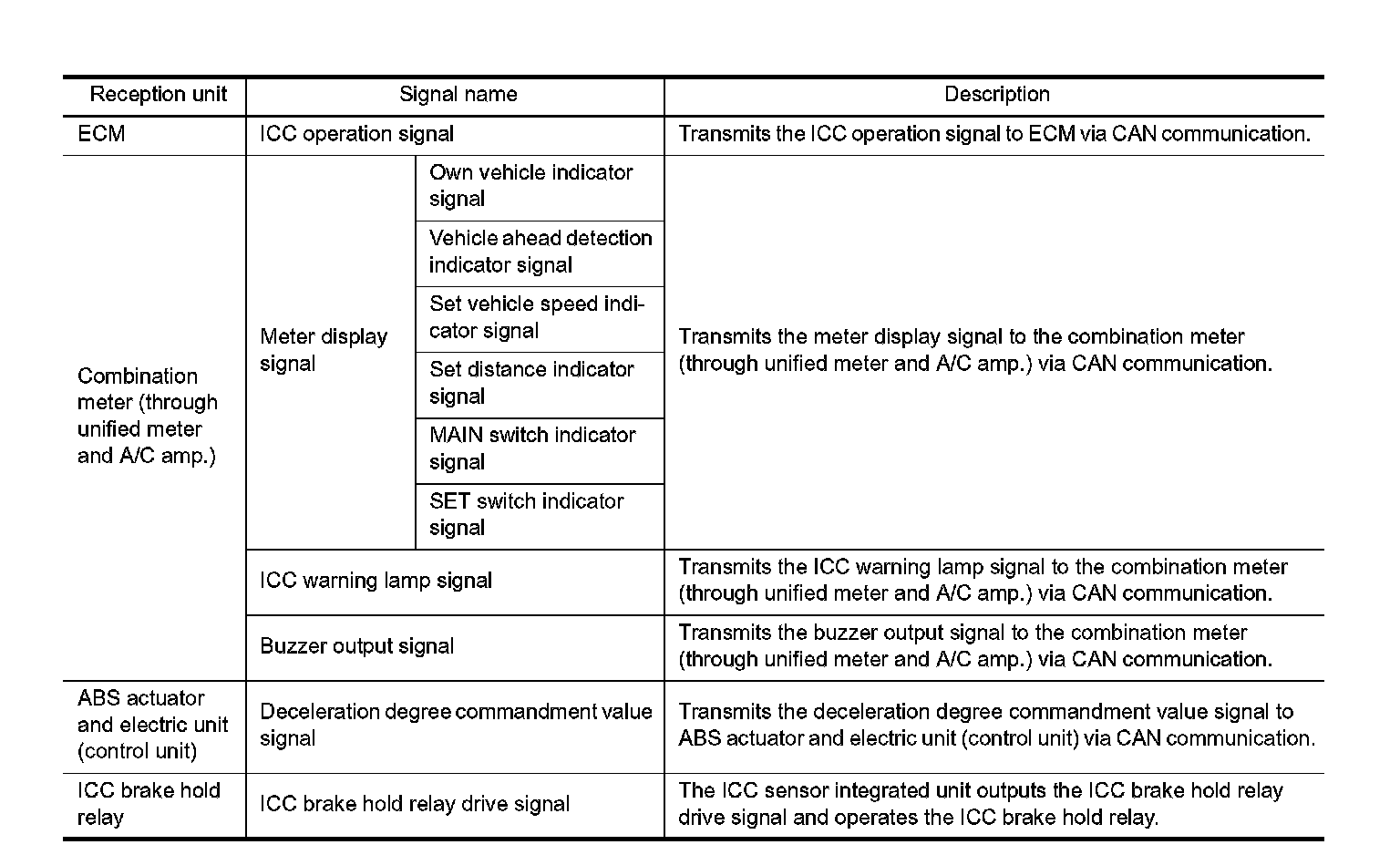 ICC SENSOR INTEGRATED UNIT INPUT/OUTPUT SIGNAL ITEM