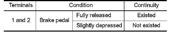 2. Check the continuity between ASCD brake switch terminals under the following conditions.