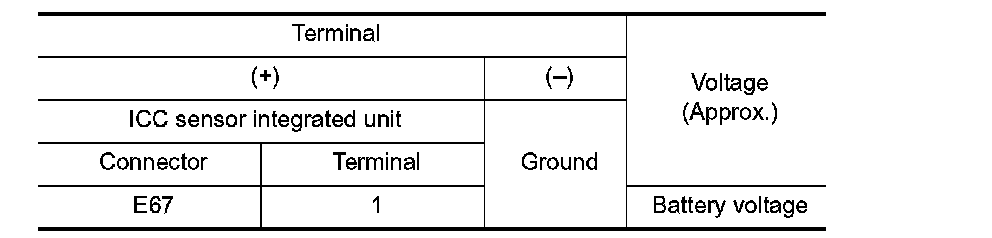 4. Check voltage between ICC sensor integrated unit harness connector and ground.