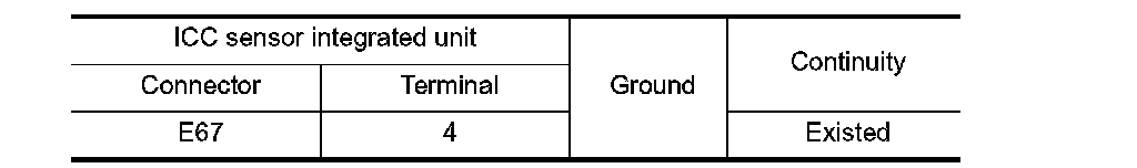 2. Check for continuity between ICC sensor integrated unit harness connector and ground.